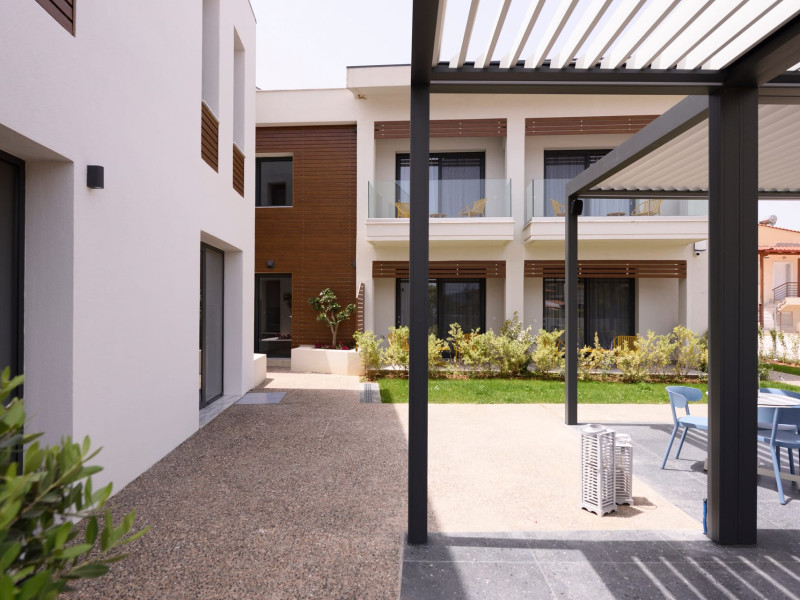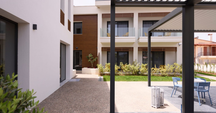 Between Kassandra & Sithonia peninsula, with easy access from Thessaloniki's airport, lies the "Falena Luxury Rooms". Located in Kalyves, Halkidiki, is only a breath away from the crystal clear blue sea.