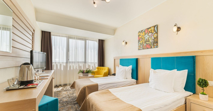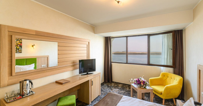 Hotelul FALEZA by Vega, ideal situat pe malul Dunarii , langa VEGA Hotel, exact in punctul 0 al orasului Galati, binecuvantat de valurile Dunarii, este locul unde vibe-ul urban prinde viata. Complet renovat si redecorat in 2019, designul interior al hotelului impresioneaza cu amenajari moderne si emana energie pozitiva, incepand cu primirea luminata de valurile Dunarii pana la camerele la moda, in culori vibrante. Adaugand valoare celor 3 stele pe care le poarta, cele 73 de camere din 6 tipuri diferite au fost concepute cu gust, cu mobilier din lemn masiv de stejar, dotate cu toate facilitatile. Garantam oaspetilor Faleza Hotel by Vega, o atmosfera relaxanta, de liniste, dar unde se simte si vibratia orasului. Cele 2 restaurante din incinta hotelului, cu terase animate si favorizate de deschiderea panoramica asupra Dunarii, aflate in topul gastronomiei galatene, creeaza amintiri inedite la Faleza Hotel by Vega. Faleza Hotel by Vega te invita sa descoperi in orasul binecuvantat de Dunare, confortul si dotarile de 3 ***, vibratia culorilor din decorurile alese, rafinamentul si ospitalitatea, toate intr-un nou concept, Vegahotels. Atmosfera creata de proximitate hotelului, Dunarea in toata splendoarea ei, Biserica fortificata Sf Precista cu gradinile sale â monument istoric, simbol al orasului, completeaza cadrul de poveste oferit de Faleza Hotel by Vega. Descopera o locatie de poveste, traieste visul dunarean, la Faleza Hotel by Vega! Doar impreuna putem cerea amintiri!Datorita dinamicitatii domeniului disponibilitatea ofertelor se modifica de la un moment la altul. De aceea ofertele sunt valabile in limita locurilor disponibile. Agentia nu este responsabila pentru eventualele neconcordante care pot aparea intre informatiile privind tarifele si alte detalii din site si informatiile primite in agentie. In aceste cazuri vor avea prioritate, intotdeauna, informatiile primite in agentie.