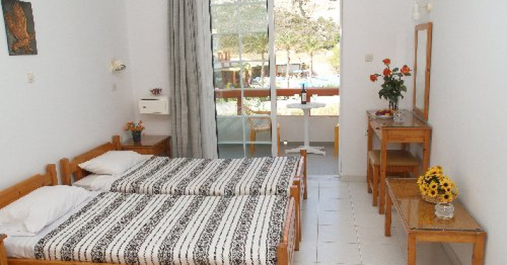 Facilitati hotel: Are 24 camere situate intr-o cladire cu doua etaje, camera de bagaje, parcare, sala TV, seif la receptie (cu plata). Hotelul nu are piscina proprie, dar clientii pot folosi gratuit una din piscinele de la Billys Bar, hotel Olympia sau hotel Irinna. Clasificarea oficiala a hotelului in Grecia: 2*.