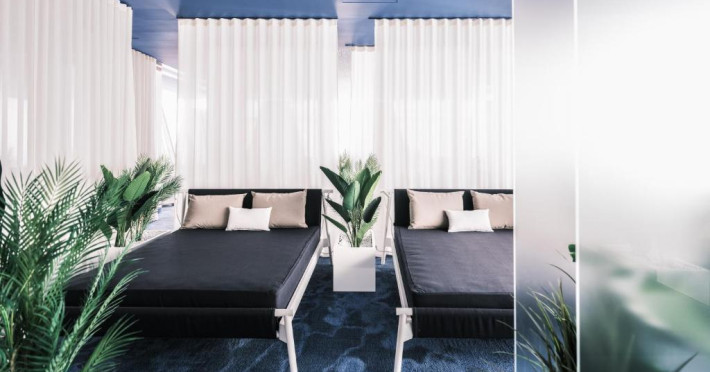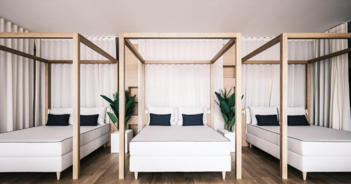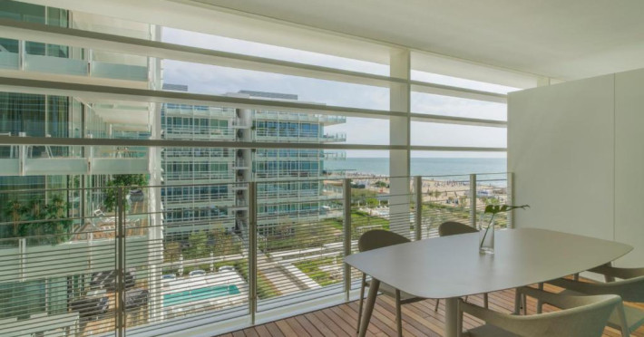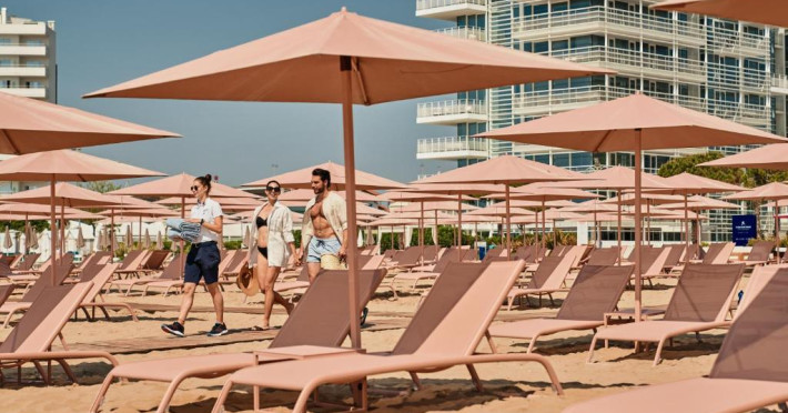 Primele 3 randuri de umbrele de soare și șezlonguri de pe plajă sunt rezervate pentru oaspeții care rezervă apartamente.