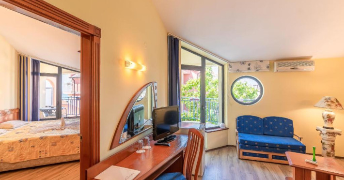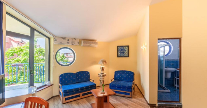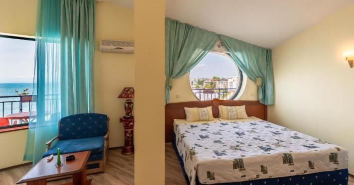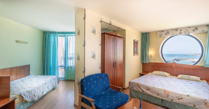 Descriere : Hotelul Evridika din Nessebar a fost construit in anul 2004 si renovat in anul 2007, fiind clasificat in prezent la 3 stele. Tip masa : Mic dejun. Localizare : Hotelul Evridika*** este situat chiar pe plaja in statiunea Nessebar, la aproximativ 2 km de orasul vechi Nessebar, langa drumul ce leaga Ravda de orasul vechi. Plaja : Plaja intinsa cu nisip fin. Dotari camere : Hotelul Evridika*** dispune 22 camere duble, 2 apartamente si 6 studiouri. Acestea sunt dotate cu:grup sanitar;TV-satelit, minibar,seif contra cost,internet wireless,balcon. In camera dubla se pot caza maxim 2 adulti + 1 copil. In studio se pot caza maxim 3 adulti + 1 copil. In apartament se pot caza maxim 2 adulti + 2 copii. Facilitati : Hotelul Evridika din Nessebar ofera: restaurant (mic dejun bufet);bar de zi;curte interioara;parcare pazita gratuita in limita locurilor disponibile,lift hidraulic;seif la receptie;terasa deasupra plajei cu sezlonguri si umbrele; Facilitati copii : Loc de joaca cu nisip, pentru copii. Restaurant : Serviciile de masa se acorda in restaurantul categoria 3*. Alte informatii : Nu se accepta animale de companie. Clasificarea agentiei: 3*
