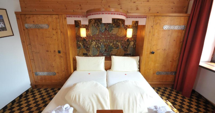 Toate camerele si apartamentele au atmosfera tipică a unui castel vechi de secole. Curtea romantică a castelului este un loc deosebit, de unde oaspetii pot admira turlele secrete si scările pline de farmec, precum si panorama minunată a impresionantilor munti tirolezi. Camerele si apartamentele sunt mobilate in stiluri diferite. In zona spa sunt disponibile ceaiuri din plante cu proprietăti detoxifiante.