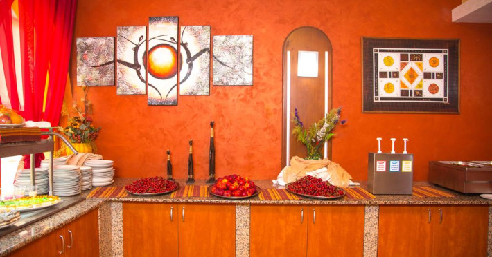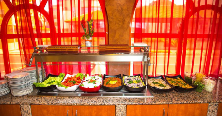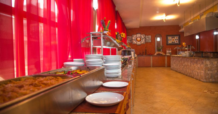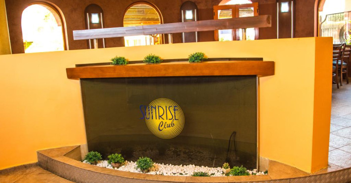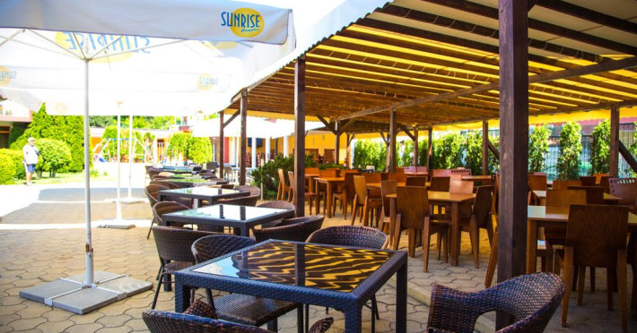 La Family Resort Sunrise oaspeții au la dispoziție un restaurant care servește mâncare în stil bufet. Preparate din bucătăria grecească așteaptă să fie degustate în fiecare zi. Masa poate fi servită atât în interior, cît si în aer liber, pe terasă, în funcție de vreme. Oaspeţii pot avea diverse băuturi răcoritoare sau alcoolice la bar. De asemenea , în cadrul proprietății, există cafenea și snack bar ideale pentru o gustare rapidă. Pentru cei cu anumite nevoi de nutriție, Family Resort Sunrise oferă meniuri pentru diete speciale.