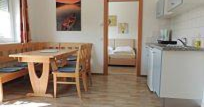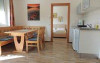 Imagetext Hotel: Apartments FAMILY XL were opened in 2014 and comply with the latest requirements for large and small. The house has a direct connection to the Sonnen Therme through a bathrobe corridor. The 55 m? apartments have a spacious living area with a balcony or terrace and two separate bedrooms for up to 5 persons and 1 crib. In the kitchen area you will find all the necessary amenities for self-catering, including coffee and tea. In the reception area you can of course use free Wi-Fi and their bikes are in good hands in the locked bike room.