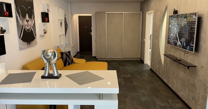 In Bucharest (Sector 6). Located in Bucharest (Sector 6), this apartment is within a 5-minute drive of Dâmboviţa and Riverplace - Sema Parc. This spa apartment is 4.7 mi (7.6 km) from Palace of the Parliament and 1.2 mi (1.9 km) from Polytechnic University of Bucharest. Make yourself comfortable in this individually decorated apartment, featuring a kitchen with a full-sized refrigerator/freezer and an oven. Your pillowtop bed comes with a down comforter and Egyptian cotton sheets. Theres a private balcony. A 55-inch LED television with cable programming provides entertainment, while complimentary wireless Internet access keeps you connected. Grab a bite from the grocery/convenience store serving guests of this apartment. Pamper yourself with a visit to the spa, which offers massages. If youre looking for recreational opportunities, youll find a spa tub, a sauna, and a fitness center. This apartment also features complimentary wireless Internet access and shopping on site.Datorita dinamicitatii domeniului disponibilitatea ofertelor se modifica de la un moment la altul. De aceea ofertele sunt valabile in limita locurilor disponibile. Agentia nu este responsabila pentru eventualele neconcordante care pot aparea intre informatiile privind tarifele si alte detalii din site si informatiile primite in agentie. In aceste cazuri vor avea prioritate, intotdeauna, informatiile primite in agentie.