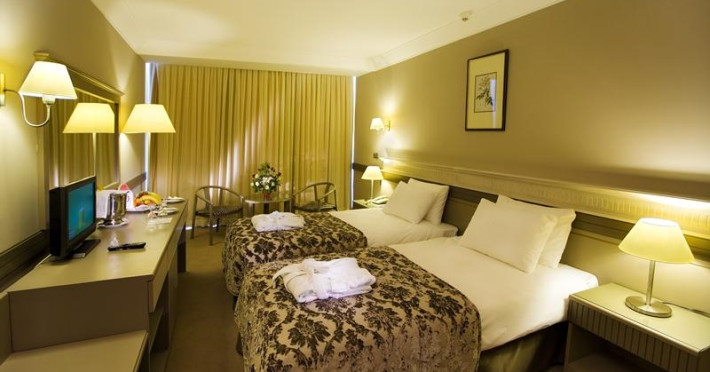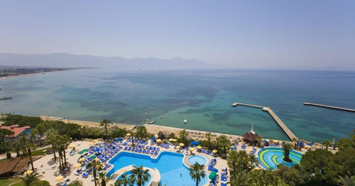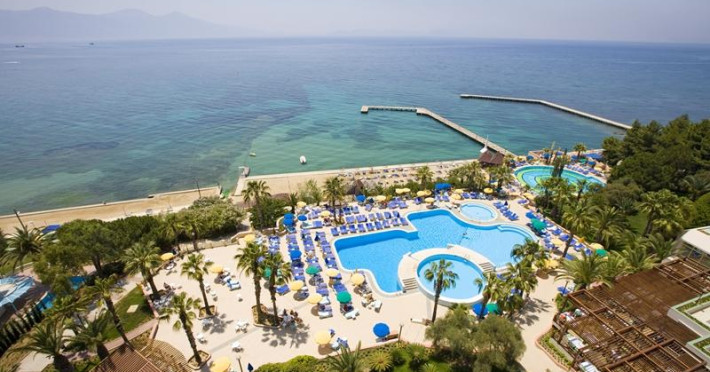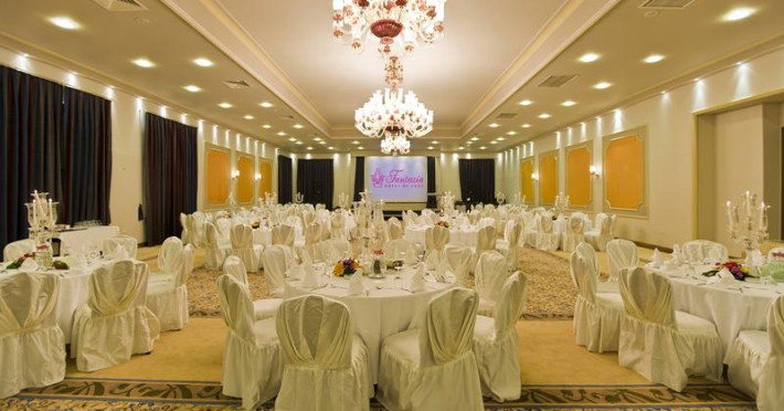 Fantasia Hotel De Luxe KuÅadası which is located in the distinguished district of Aegean region, KuÅadası, serve you the guests with is world standardized quality and its location close to antique city#39;s Ephesia, Prienne, Miletus, Didyma and church of Virgin Marry House. Eight Floor main building that attentively constructed to preserve natural structure. Fantasia Hotel de Luxe KuÅadası gives you choices with full of entertainment like is beach 150 meters long , its wharf which yachts 2 meters of depth can approach, swimming pools and indoor heated swimming pool which can be used both in summer and winter. ------------------------- ACCOMMODATION Fantasia Hotel De Luxe KuÅadası; at service of elite guests to meet their comfort and quality expectations on highest level with 270 standard rooms(3 handicapped rooms incl.), 1 honeymoon suite, 44 trp rooms, 6 junior suites, 8 senior suites, 4 connection rooms, 2 presidential suites ; all told 335 specially designed privileged rooms. STANDARD ROOM: Standard rooms have a sitting group and a bath in addition to a bedroom that has an option as two twin beds or one French beds. CORNER AND TRIPLE ROOM: Corner rooms are larger than standard rooms which one French bed, one single bed; or 3 single bed also with sitting group and bathroom in. JUNIOR SUITES: The bedroom that one French bed in connected to a bathroom and living room that also shaped with sitting group. SENIOR SUITES: Senior Suites has a special bedroom with bath, two toilets and a large living room. In the bedroom there is double bed and inside the room in a special bathroom with both bathtub and shower. Central air conditioner, key card system, direct telephone, internet connection, safe deposit box, satellite TV, music, hair dryer, carpet, fire informing system, telephone in bathroom, all rooms bathtub. All rooms are non smoking rooms and 3 handicapped rooms for handicapped guests reserved. Pets are not acceptably . ------------------------- INCLUDED SERVICES AND ACTIVITIES;nbsp;Safe Box(with deposite), indoor swimming pool, tennis court, (daylight), tennis ball and rackets, table tennis, Turkish bath, sauna, fitness center, beach volley, mini club, youth club, animation show, baby chair at restaurant, beach umbrella, matters, beach towel. EXCLUDED SERVICE AND ACTIVITIES;nbsp;Premium Beverages, fresh orange juice in breakfast, room service, wireless in general place amp; in all rooms, telephone, fax, tennis court with illumination, laundry services, dry cleaning, baby sitting, motorized water sports, ( banana, parasailing, water ski, etc...) diving club and courses, doctor and services, massage, hairdresser, beauty parlour, billiards, disco. ------------------------- All Inclusive concept and activities which allows all food and local beverages in the room rate except premium beverages , has detailed follows. RESTAURANTS AMP; BARS * Nostalgia Restaurant : capacity of 400 people indoor and 300 people outdoor * Allegro Restaurant : capacity of 90 people 07:00-10:00 Breakfast Nostalgia Restaurant 12:30-14:00 Lunch Nostalgia Restaurant 19:30-21:30 Dinner Nostalgia Restaurant 12:30-16:00 Snacknbsp;Allegro Restaurant 17:00-18:00 Tea Time Allegro Restaurant 23:30-24:30 Night Meal Nostalgia Restaurant BARS; Ballade Bar : 24 Hours Local drinks, Soft drinks and Cocktails. Blues Bar : 10:00-24:00 Local drinks, Soft drinks Bolero Bar : 10:00-18:00 Local and Soft drinks Hula Bar : 10:00-18:00 Local and Soft drinks nbsp; For more details click hereDatorita dinamicitatii domeniului disponibilitatea ofertelor se modifica de la un moment la altul. De aceea ofertele sunt valabile in limita locurilor disponibile. Agentia nu este responsabila pentru eventualele neconcordante care pot aparea intre informatiile privind tarifele si alte detalii din site si informatiile primite in agentie. In aceste cazuri vor avea prioritate, intotdeauna, informatiile primite in agentie.