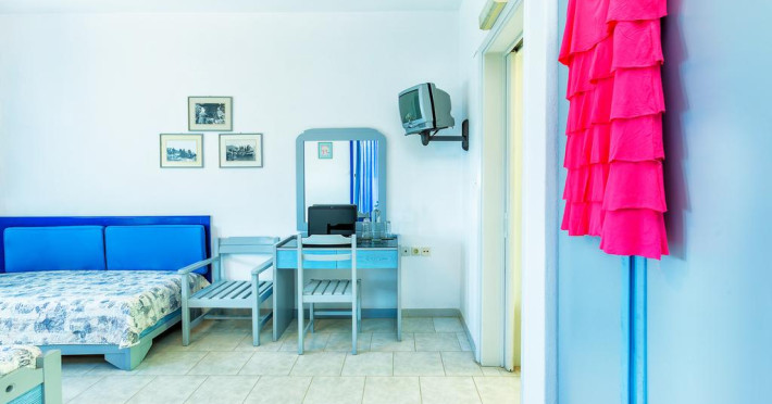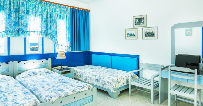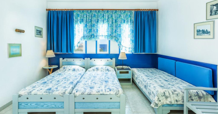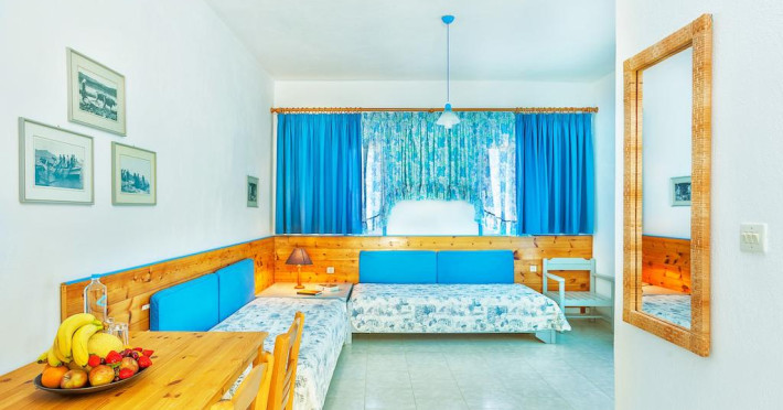 Fiecare cameră dispune de cană-fierbător. Unele camere au balcon cu vedere la mare sau la grădină. Camerele confortabile de la Faros Apartments sunt dotate cu pardoseală de gresie/ marmură, aer condiționat și Tv. În camere există baie cu cadă sau duș prevăzută cu foehn. Fiecare unitate de cazare include o chicinetă utilată cu frigider, plită de gătit și ustensile de bucătărie. Proprietatea oferă camere pentru familie cu o suprafață mai mare și un număr mai mare de paturi față de cele standard. Se pot rezerva de asemenea camere pentru nefumători.