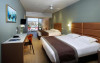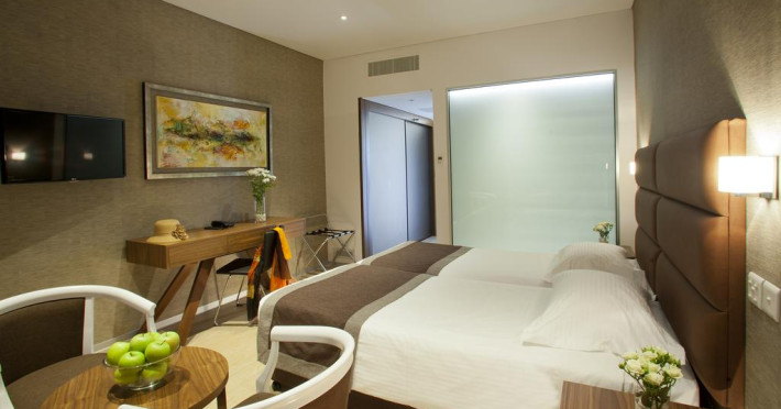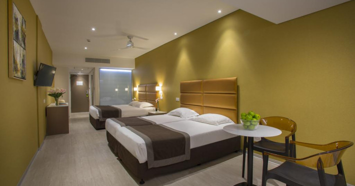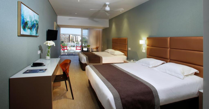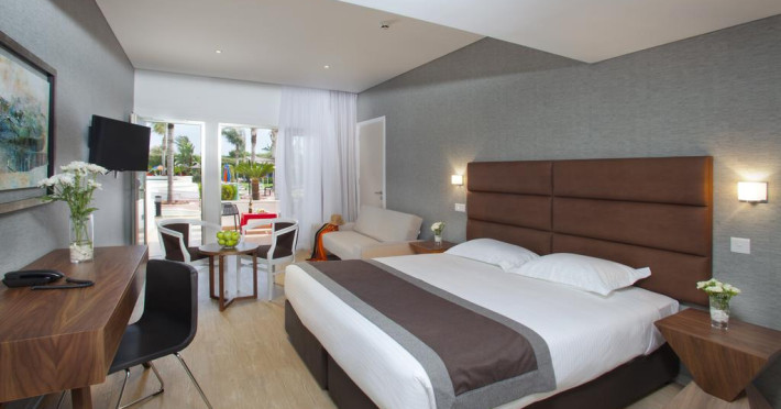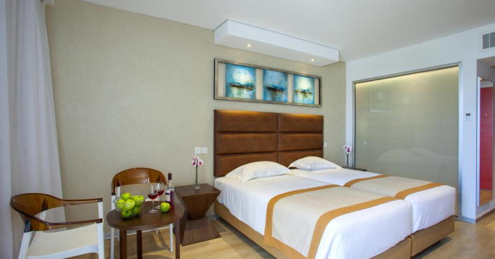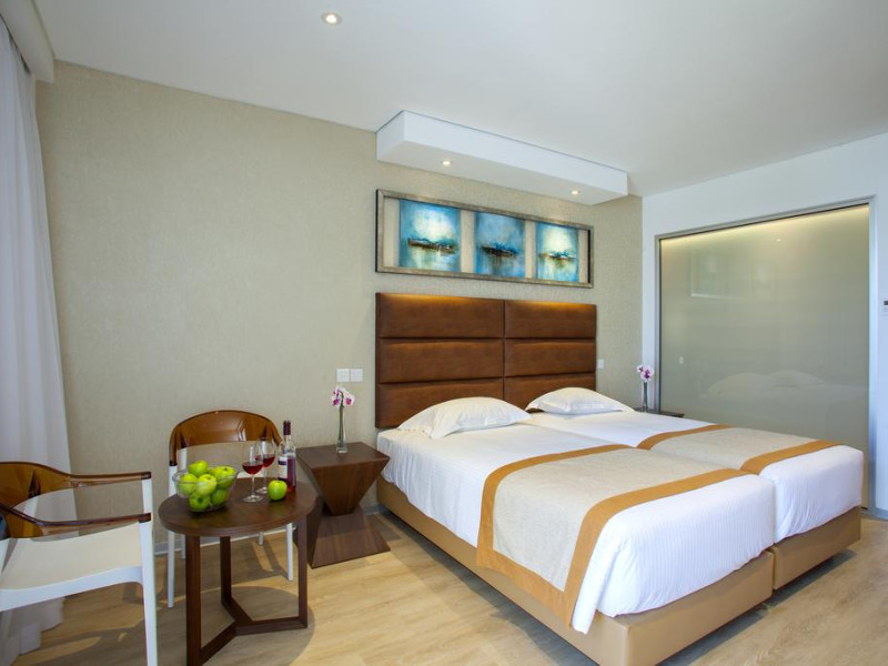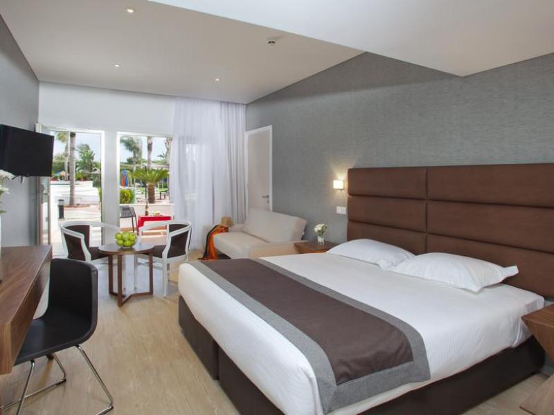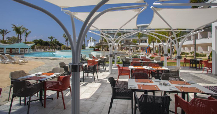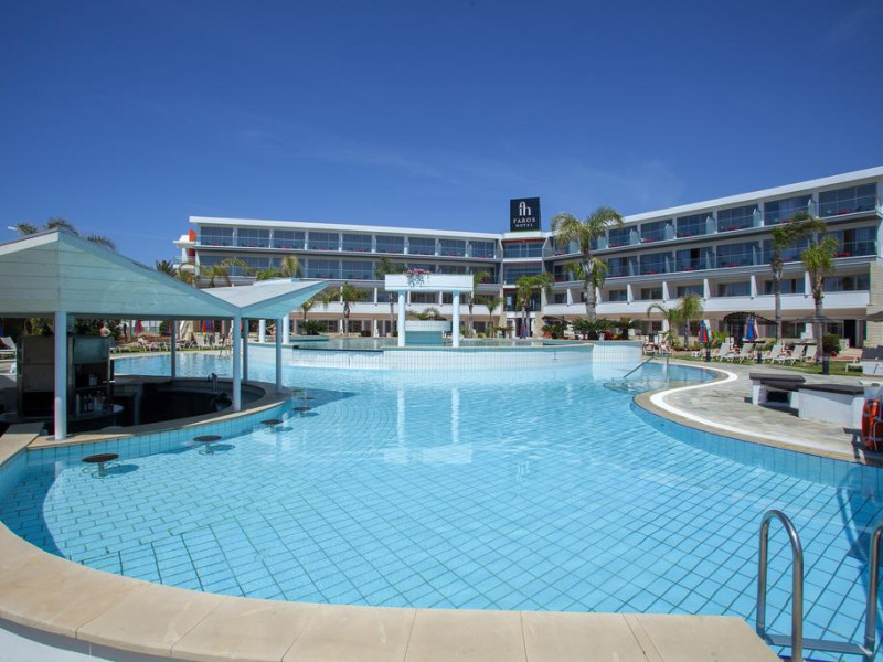 The Faros is set in a peaceful location just off the fishing harbour of Ayia Napa. This setting allows you to spend your day on the white sands of the picturesque local beach before diving into the cooling waters of the hotel pool. Unwind with a drink at the pool bar before soaking up the sun in comfort in the outdoor hot tub or on a sun lounger. The hotel buildings are surrounded by palm-filled gardens, adding to the tropical feel. Further relaxation can be found in the Faros' health club, where you can spend time in the gym, steam bath, sauna and massage room. Other great leisure facilities include on-site tennis courts. Spend your evening enjoying the live entertainment with a cocktail from the bar. You can also try the Cypriot and other international dishes served under the stars at the hotel's Galini Restaurant.The Faros is set in a peaceful location just off the fishing harbour of Ayia Napa. This setting allows you to spend your day on the white sands of the picturesque local beach before diving into the cooling waters of the hotel pool. Unwind with a drink at the pool bar before soaking up the sun in comfort in the outdoor hot tub or on a sun lounger. The hotel buildings are surrounded by palm-filled gardens, adding to the tropical feel. Further relaxation can be found in the Faros' health club, where you can spend time in the gym, steam bath, sauna and massage room. Other great leisure facilities include on-site tennis courts. Spend your evening enjoying the live entertainment with a cocktail from the bar. You can also try the Cypriot and other international dishes served under the stars at the hotel's Galini Restaurant.