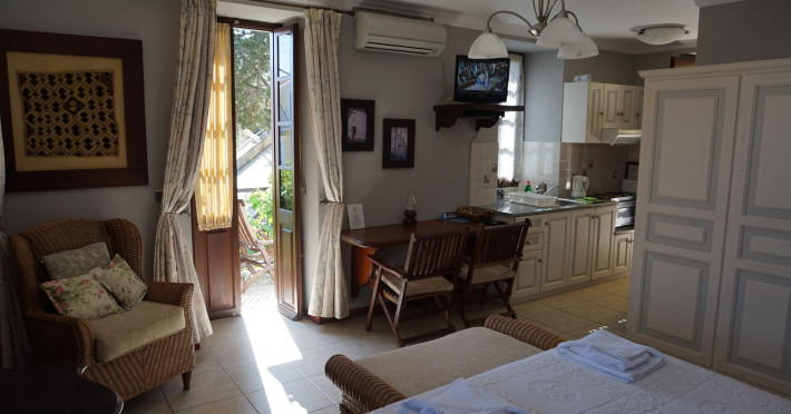 When you a stay at Faros Suites - Adults Only in Kefalonia, you'll be in the entertainment district, within a 5-minute walk of Ionian Sea and Fiskardo Port. This hotel is 15.6 mi (25.1 km) from Myrtos Beach and 0.7 mi (1.2 km) from Foki Beach. Make yourself at home in one of the 7 air-conditioned rooms featuring kitchenettes with full-sized refrigerators/freezers and ovens. Your room comes with a pillowtop bed. Satellite television is provided for your entertainment. Conveniences include safes and desks, and housekeeping is provided daily. Distances are displayed to the nearest 0.1 mile and kilometer.