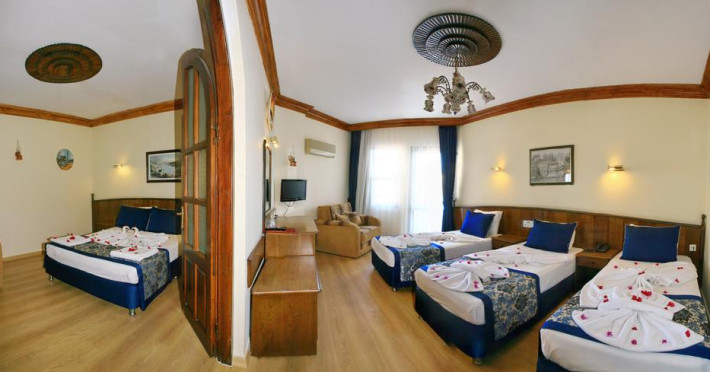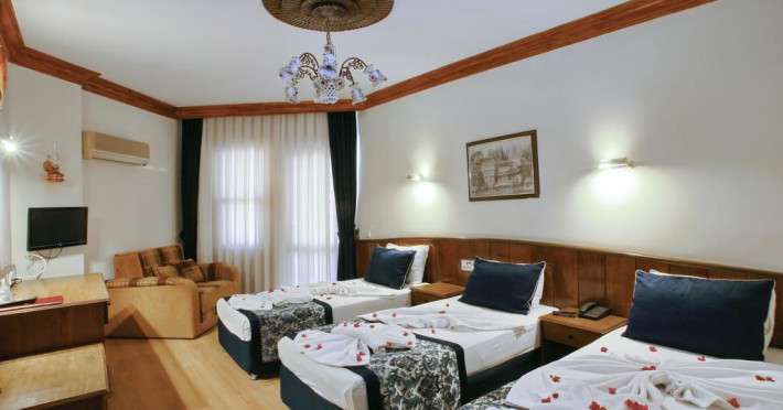 Sunt disponibile 67 camere. Camerele luminoase de la Kleopatra Fatih Hotel sunt dotate cu parchet, aer condiționat, Tv cu canale prin satelit și seif. Oaspeții au la dispoziție serviciul de room service pentru a servi masa sau diverse băuturi. Oaspeții au acces la serviciul Wi-fi în camere contra cost. În camere există baie cu cadă sau duș ce are în dotare foehn și articole de toaletă gratuite. Camerele au balcon cu vedere la mare, la piscină sau la oraș. Curățenia in cameră se face zilnic. Proprietatea oferă camere pentru familie cu o suprafață mai mare și un număr mai mare de paturi față de cele standard.