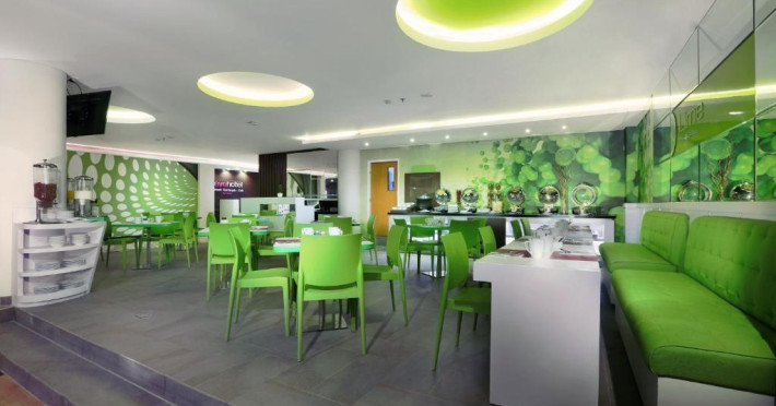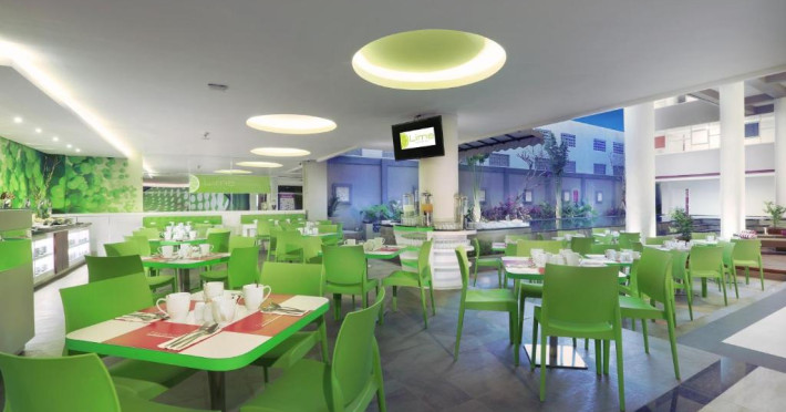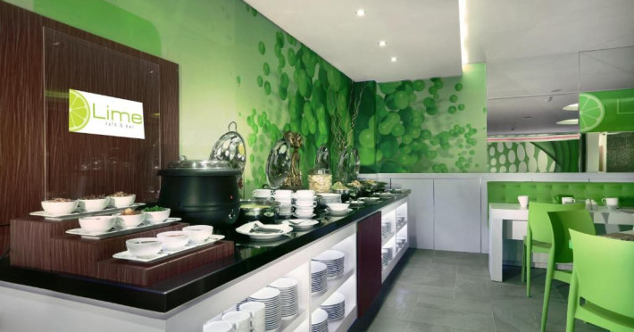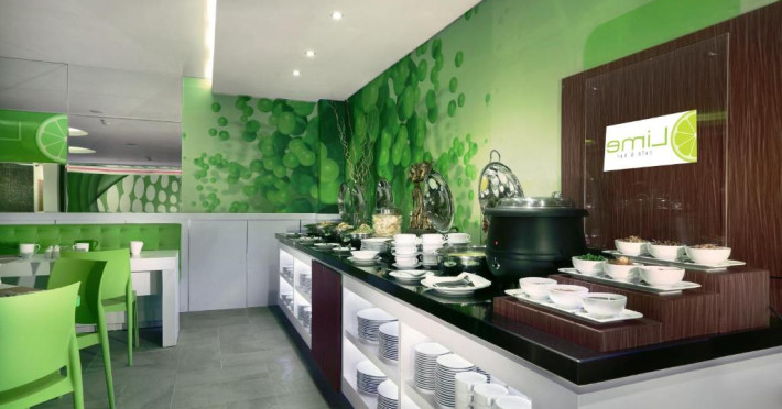 Opțiunile de luat masa, includ Restaurantul Lime, care servește preparate indoneziene și occidentale. Oaspeții se pot bucura de mese in confortul camerei lor, apeland la room service.