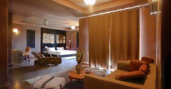 This elegant hotel is on the Route de l0urika, close to Marrakech but away from the city centres hustle and bustle. As part of its health and fitness service it provides a spa providing soothing body treatments, a Thai massage service, yoga and Tai Chi. Guests who are avid readers can also select works from our 20,000 book library. The accommodation is arranged in the form of 10 villas in the establishments 6-hectare grounds. All the guest quarters are equipped with an en-suite bathroom, an outdoor terrace and television. The restaurant serves traditional Moroccan dishes, and if guests fancy a drink, there is always the on-site bar. Courses in Thai cuisine are organised on the premises. Private parking and Wi-Fi connection are both provided free of charge. This 60-room establishment is only 15 minutes on foot from the medina and the zocos.This elegant hotel is on the Route de l0urika, close to Marrakech but away from the city centres hustle and bustle. As part of its health and fitness service it provides a spa providing soothing body treatments, a Thai massage service, yoga and Tai Chi. Guests who are avid readers can also select works from our 20,000 book library. The accommodation is arranged in the form of 10 villas in the establishments 6-hectare grounds. All the guest quarters are equipped with an en-suite bathroom, an outdoor terrace and television. The restaurant serves traditional Moroccan dishes, and if guests fancy a drink, there is always the on-site bar. Courses in Thai cuisine are organised on the premises. Private parking and Wi-Fi connection are both provided free of charge. This 60-room establishment is only 15 minutes on foot from the medina and the zocos.