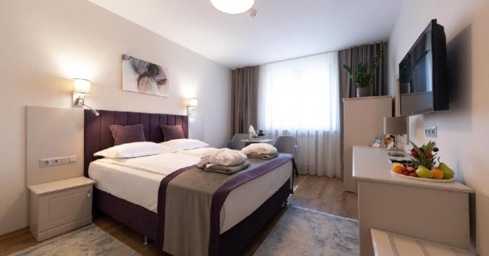 Suita pentru familie: ofera un spatiu mai mare (40 mp) pentru familii cu doi copii care vor sa petreaca timpul in mod confortabil si plcut, fiind echipat cu doua bai.
