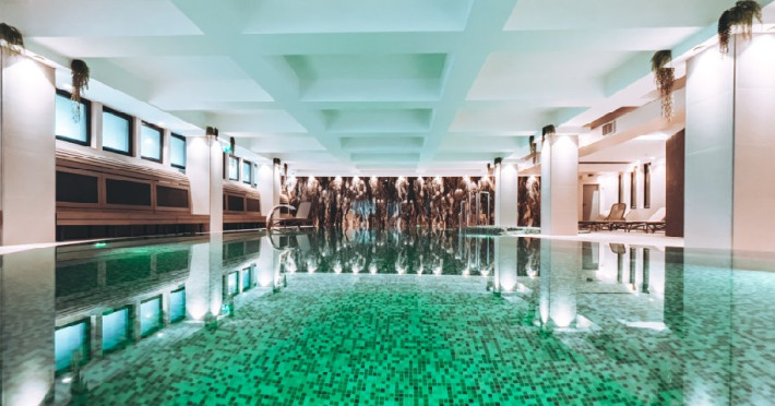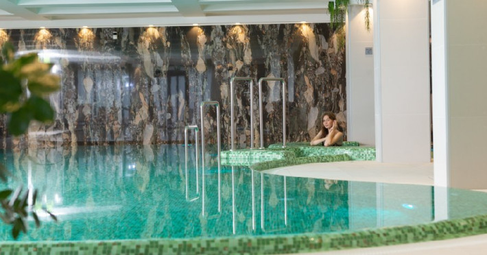 Fcilitati SPA: piscina wellness cu zone de hidromasaje si jet cascada, bazin cu hidromasaj, piscina pentru copii, casa salina, saune finlandeze, ifrasauna, camera de abur, ciubar cu apa acidulata, ciubar cu apa sarata, cafe bar, insula de infrumusetare: coafor, manichura, pedichiura, spatii de relaxare.