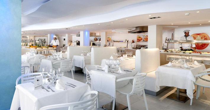 La Fergus Style Cala Blanca Suites oaspeții au la dispoziție un restaurant care servește mâncare în stil bufet. Preparate din bucătăria internațională așteaptă să fie degustate în fiecare zi la micul dejun, prânz și cină. Masa poate fi servită atât în interior, cît si în aer liber, pe terasă, în funcție de vreme. Oaspeţii pot avea diverse băuturi răcoritoare sau alcoolice la bar. Pentru cei cu anumite nevoi de nutriție, Fergus Style Cala Blanca Suites oferă meniuri pentru diete speciale.