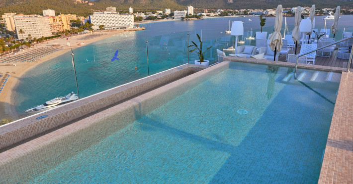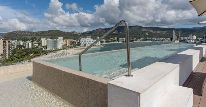 On the roofterrace there is an infinity pool for a refreshing swim with the opticalillusion that the water extends towards the horizon, and the sky bar to enjoy acocktail while enjoying the sunset.
