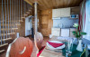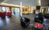 Spa facilities include a sauna, a steam bath, and a sun bed. A small pool, an indoor playroom, and a playground in the garden are provided for children.