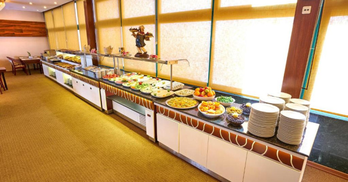 Zona cu restaurante dispune de 2 restaurante și de un bar. Locul de cazare oferă pentru masă demipensiune și pensiune completă. Pentru masă se poate alege între mic dejun, prânz și cină.