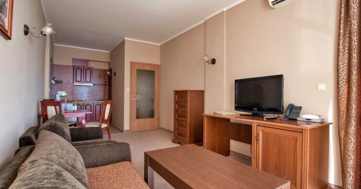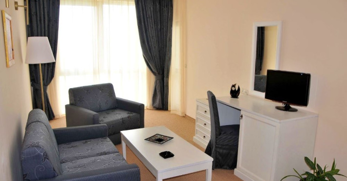 Toate camerele au balcon (exceptie camerele cu vedere la mare, care sunt si fara balcon), A/C centralizat, TV, telefon, baie cu cada, uscator de par, minibar.