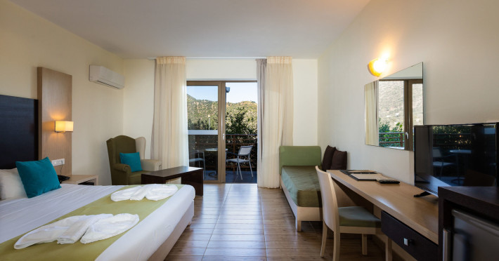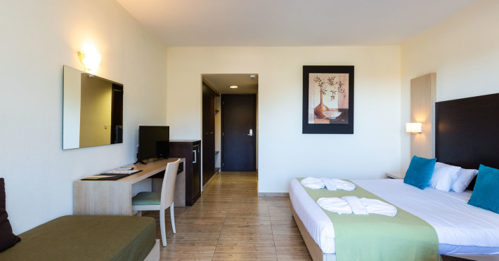 Un aparat de aer condiționat și un sistem de încălzire creează o atmosferă plăcută în camere. În majoritatea camerelor se găsește câte un balcon. Camerele au un pat dublu sau un pat „King size”. Sunt disponibile dormitoare separate. În plus, pentru cei mici sunt disponibile paturi pentru copii. De asemenea, sunt disponibile un seif și un minibar. Mai sunt disponibile și un frigider, un minifrigider și un aparat pentru cafea/ceai. Un telefon cu apelare directă, un televizor cu canale prin satelit/cablu TV, DVD player-ul și WiFi-ul (contra cost) oferă un concediu confortabil. În cameră se găsesc și papuci de casă. În baia dotată cu un duș și o cadă există un uscător de păr. Pentru familiile cu copii stau la dispoziție camere de familie.