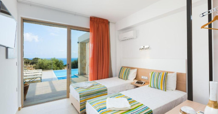 Camerele confortabile de la Filion Suites Resort & Spa au pardoseală de gresie/ marmură, aer condiționat, Tv cu canale prin satelit și seif. Fiecare cameră oferă cană-fierbător și mașină pentru prepare cafea sau ceai. Oaspeții pot solicita serviciul de room service pentru a servi masa sau diverse băuturi. Camerele au balcon cu vedere la mare, la piscină sau la munte. Oaspeții au acces gratuit la serviciul Wi-fi în camere. În camere există baie cu cadă sau duș, foehn, articole de toaletă gratuite, precum și halate de baie și papuci. Curățenia in cameră se face zilnic. Există camere care au zonă de relaxare cu canapea, ceea ce asigură un plus de confort și răsfăț. Proprietatea oferă camere pentru familie cu o suprafață mai mare și un număr mai mare de paturi față de cele standard.