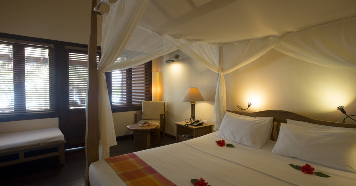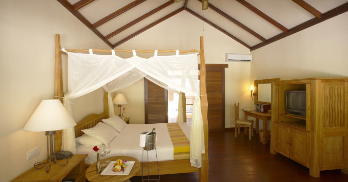 Vilele sunt construite pe stalpi, sunt spatioase si au aer conditionat, acoperisuri de stuf si o terasă privată de lemn, cu paturi de zi. Toate vilele sunt dotate cu un TV cu ecran plat, un CD player si un minibar.