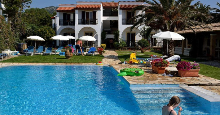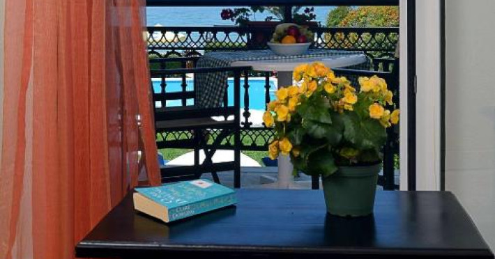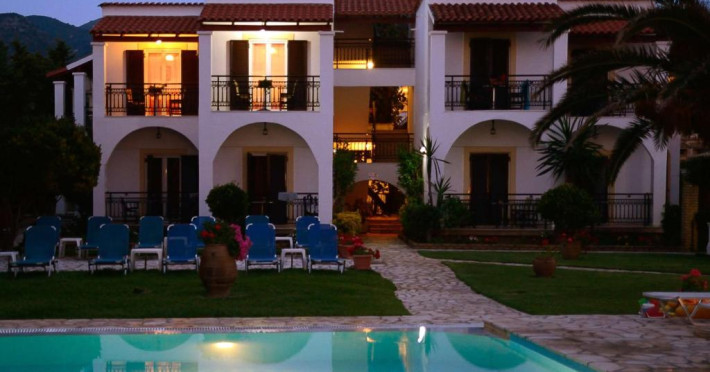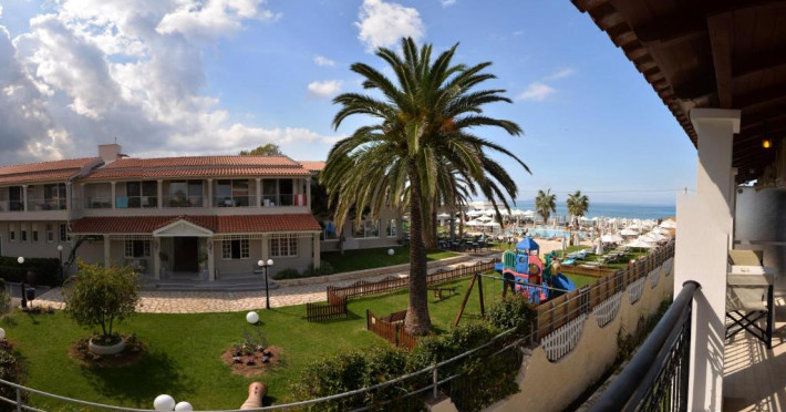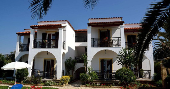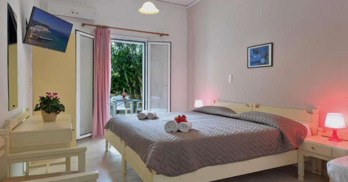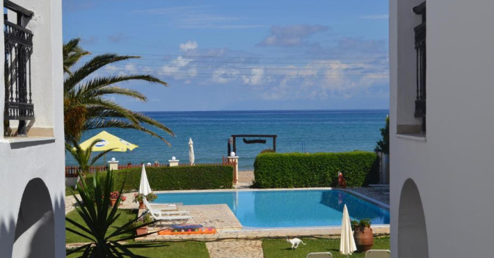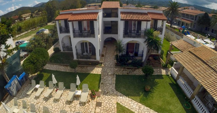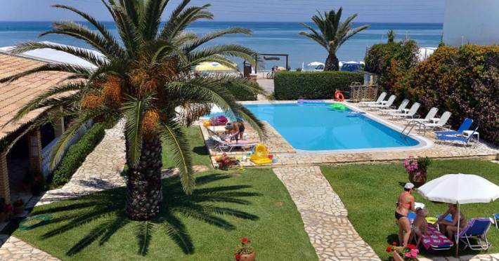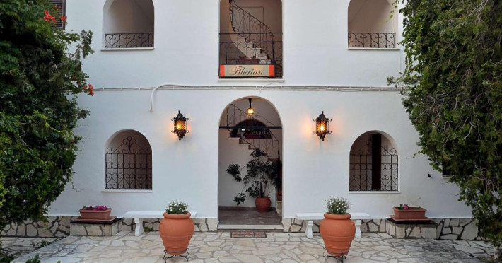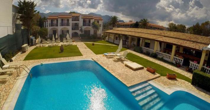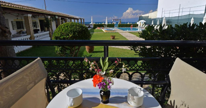 Filorian se află chiar pe plaja din Acharavi și include o piscină cu o terasă mobilată și un bar. Hotelul oferă unități de cazare in sistem self-catering, cu terasă sau balcon cu vedere la grădină, la munte sau la Marea Ionică. Renumita casă albă a lui Durrel este la 15 minute cu mașina.