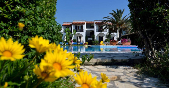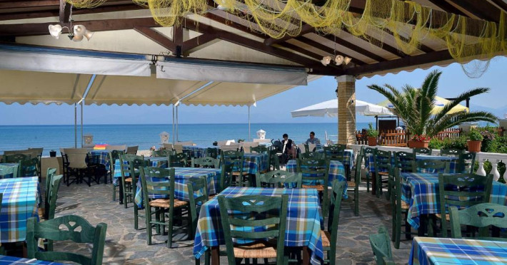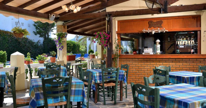 Cu vedere la apusul soarelui peste mare, restaurantul servește o mare varietate de mancăruri, de la gustări in timpul zilei pană la un meniu complet de preparate grecești și internaționale. Langă piscină puteți să savurați băuturi și gustări ușoare.