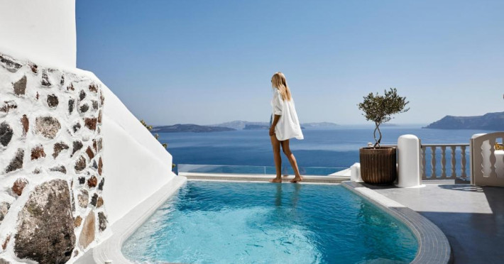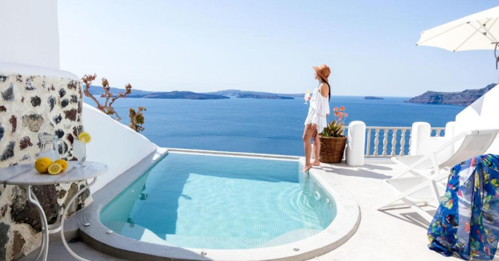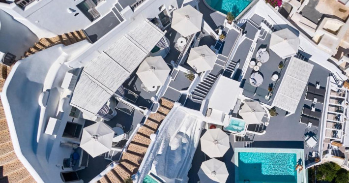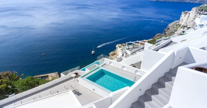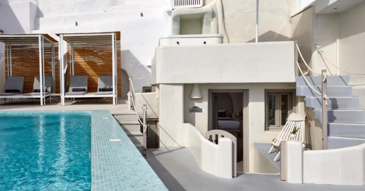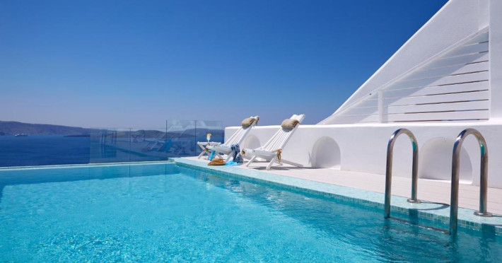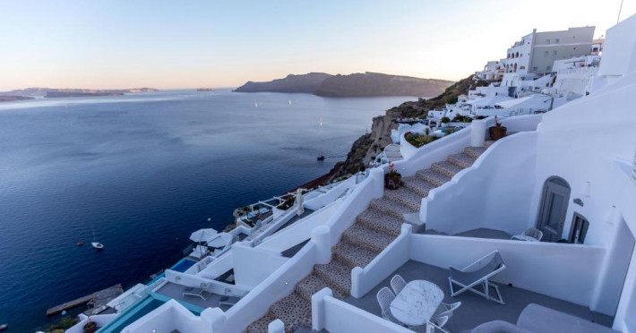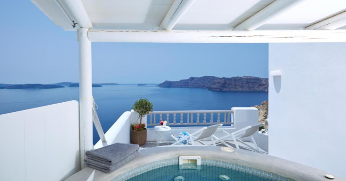 Filotera Suites este o proprietate de 4 stele situată în Oia (Santorini) care oferă camere cu vedere la mare, un restaurant, o piscină în aer liber și o terasă cu șezlonguri și umbrele de soare. Proprietatea are servicii de recepție cu program non - stop, concierge și închirieri auto. Se oferă acces gratuit la internet Wi-fi în spațiile publice.