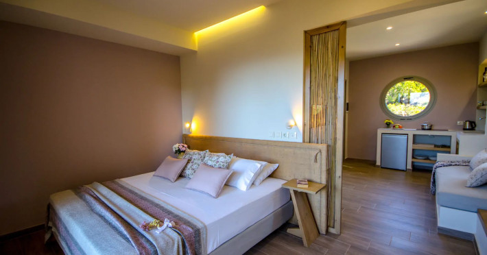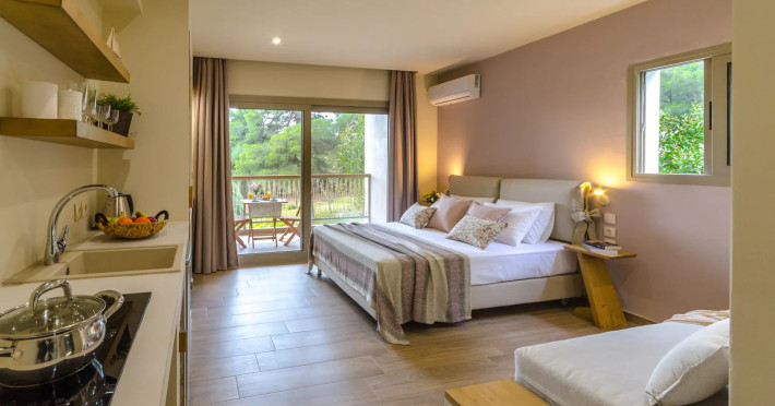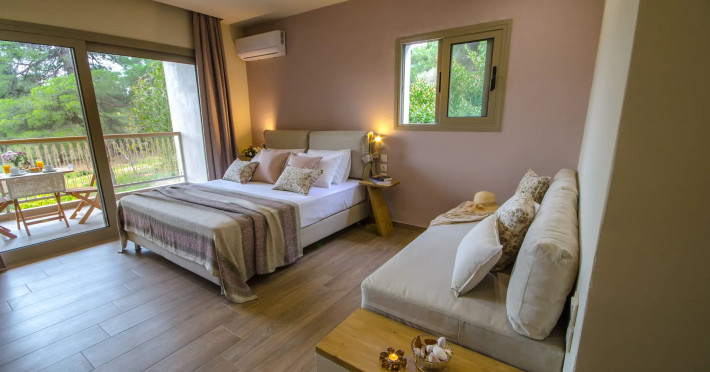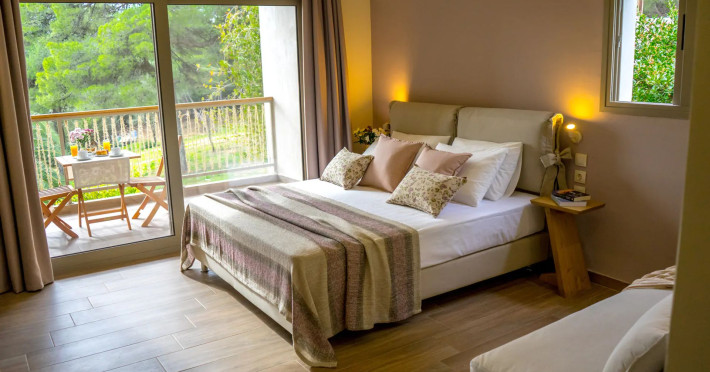In Forest Resort Suites Skiathos you will experience a relaxing and a home-welcoming atmosphere. It is based in an 8000 sq.m. green land property, with a magnificent see view, located in Troulos area, 7km far away from the Skiathos harbor & Skiathos town. The propertyâs ideal location makes it a perfect base to explore Skiathosâ beauties. Forest Resort features 12 suites with all modern comforts and is a perfect choice for couples and families who want to feel the tranquility of greek nature and live a quiet and relaxing vacation. Forest Resort Suites Skiathos is a dreamy forest retreat!!!Datorita dinamicitatii domeniului disponibilitatea ofertelor se modifica de la un moment la altul. De aceea ofertele sunt valabile in limita locurilor disponibile. Agentia nu este responsabila pentru eventualele neconcordante care pot aparea intre informatiile privind tarifele si alte detalii din site si informatiile primite in agentie. In aceste cazuri vor avea prioritate, intotdeauna, informatiile primite in agentie.
