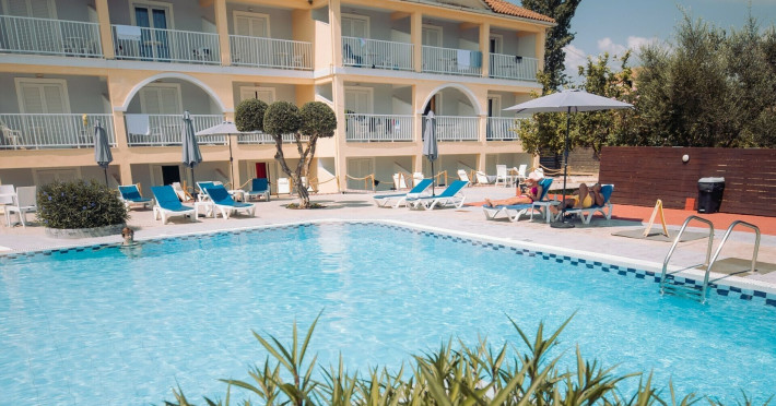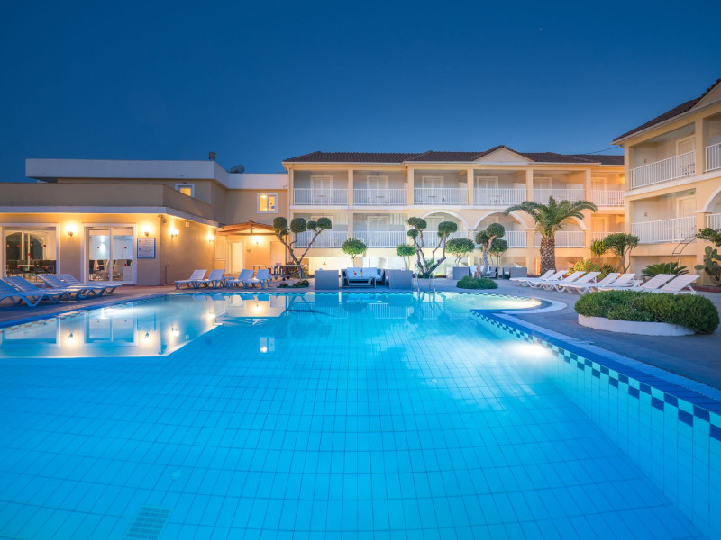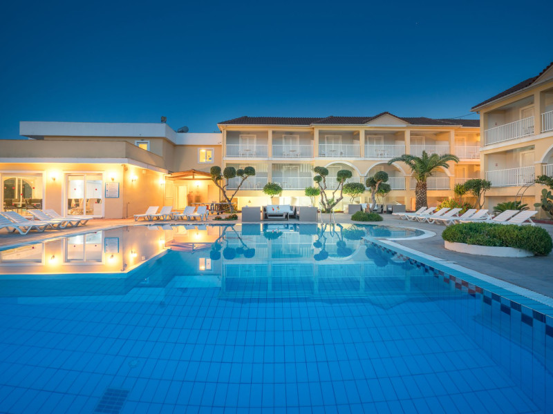 Emerald green grass, topaz blue skies and mountains with reach vegetation. These are the jewels of Tsilivi Zakynthos that plan to spoil you from the moment you arrive in Filoxenia Hotel. The natural scenic beauty of the complex is juxtaposed by our traditional Greek hospitality; enchanting visitors who leave with the most favorable impressions and the certainty that they will keep in touch and vow to return. An exquisite and comfortable "Home away from home", a warm feeling of welcome in a quiet and soft atmosphere, unique in Zakynthos.The four star Filoxenia Hotel Zakynthos is only 3 km away from Zante town, ideally situated in one of the less busy and beautiful countryside in the island, within 1.5 km 20-30 minutes walking from Tsilivi beach and the busy resort center.Modern amenities, a sprinkling of umbrellas by the poolside, 2 swimming pools and a children's pool for the young guests.A bar and a snack bar are conveniently located for a quick thrust as you laze under the sun. Whatever your age and your preference, you will be welcomed at any activity in our day time animation. All inclusive package at Filoxenia Hotel: Buffet Breakfast: from 8:00 hours to 10:00 hoursBuffet Lunch: from 12:30 to 14:30 hoursSnacks Buffet: from 15:30 hours to 16:30 hours (in the snack bar area)Afternoon Tea & snacks: from 17:00 hours to 18:00 hours (Tea, coffee, cakes and biscuits)Buffet Dinner: from 19:00 hours to 21:30 hoursBeverages:From 10:00 to 23:00 hoursLocal Drinks Draft beer‚ local wine, ouzo, juices, lime, brandy, gin, whisky, vodka, rum, tequila, liqueurs, soft drinks, still water.Hot Beverages: tea, milk and filter coffee.Ice cream: selection of different flavours. From 10:00 to 18:00 hoursDuring meals, local drinks (Draft beer‚ local wine, soft drinks, still water, tea and filter coffee) are included.Not included in the all inclusive package: Cocktails, Safety deposit box, Pool table, Massage, nail treatment, Laundry service, A la carte meals in the snack bar, Mini bar goods.Emerald green grass, topaz blue skies and mountains with reach vegetation. These are the jewels of Tsilivi Zakynthos that plan to spoil you from the moment you arrive in Filoxenia Hotel. The natural scenic beauty of the complex is juxtaposed by our traditional Greek hospitality; enchanting visitors who leave with the most favorable impressions and the certainty that they will keep in touch and vow to return. An exquisite and comfortable "Home away from home", a warm feeling of welcome in a quiet and soft atmosphere, unique in Zakynthos.The four star Filoxenia Hotel Zakynthos is only 3 km away from Zante town, ideally situated in one of the less busy and beautiful countryside in the island, within 1.5 km 20-30 minutes walking from Tsilivi beach and the busy resort center.Modern amenities, a sprinkling of umbrellas by the poolside, 2 swimming pools and a children's pool for the young guests.A bar and a snack bar are conveniently located for a quick thrust as you laze under the sun. Whatever your age and your preference, you will be welcomed at any activity in our day time animation. All inclusive package at Filoxenia Hotel: Buffet Breakfast: from 8:00 hours to 10:00 hoursBuffet Lunch: from 12:30 to 14:30 hoursSnacks Buffet: from 15:30 hours to 16:30 hours (in the snack bar area)Afternoon Tea & snacks: from 17:00 hours to 18:00 hours (Tea, coffee, cakes and biscuits)Buffet Dinner: from 19:00 hours to 21:30 hoursBeverages:From 10:00 to 23:00 hoursLocal Drinks Draft beer‚ local wine, ouzo, juices, lime, brandy, gin, whisky, vodka, rum, tequila, liqueurs, soft drinks, still water.Hot Beverages: tea, milk and filter coffee.Ice cream: selection of different flavours. From 10:00 to 18:00 hoursDuring meals, local drinks (Draft beer‚ local wine, soft drinks, still water, tea and filter coffee) are included.Not included in the all inclusive package: Cocktails, Safety deposit box, Pool table, Massage, nail treatment, Laundry service, A la carte meals in the snack bar, Mini bar goods.