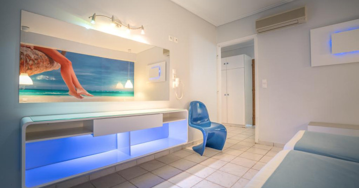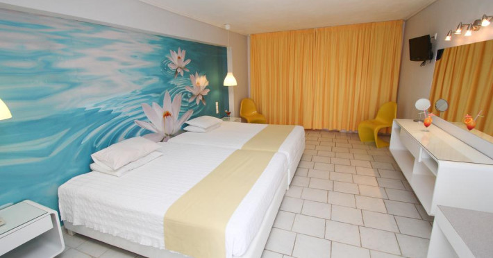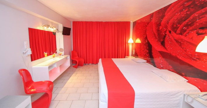 Sunt disponibile 81 camere. Camerele confortabile de la Filoxenia au pardoseală de gresie/ marmură, aer condiționat, Tv cu canale prin satelit și seif. Fiecare cameră dispune de mașină pentru preparare cafea sau ceai și fierbător În camere există baie cu cadă sau duș prevăzută cu foehn. Unele camere au balcon, cu vedere la grădină, unde oaspeții se pot relaxa în compania celor dragi. Oaspeții au acces gratuit la serviciul Wi-fi în camere. Curățenia in cameră se face zilnic. Toate camerele spațioase de la Filoxenia au zonă de relaxare cu canapea, ceea ce oferă un plus de confort. Fiecare unitate de cazare are frigider. Proprietatea oferă camere pentru familie cu o suprafață mai mare și un număr mai mare de paturi față de cele standard.