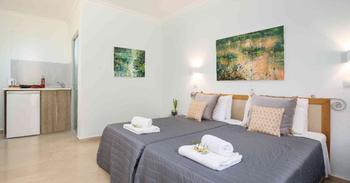Descriere: Finata Studios este o proprietate mica, destinata exclusiv adultilor, care se bucura de o locatie pe malul marii, la doar 20 m de plaja cu nisip si la 45 km de aeroportul international din Corfu. Complet renovat in 2018, ofera studiouri si apartamente ieftine, toate dotate cu o chicineta . In plus, oaspetii au acces complet la hotelul partener, inclusiv o piscina, o sectiune de plaja, un restaurant si doua baruri.Localizare: Situat in Kavos, regiunea Corfu, Finata Studios este situat la 300 de metri de plaja Kavos. Proprietatea este situata la cativa pasi de plaja Kavos, la 2,4 km de plaja Arkoudilas si la 2,5 km de plaja St Peter.