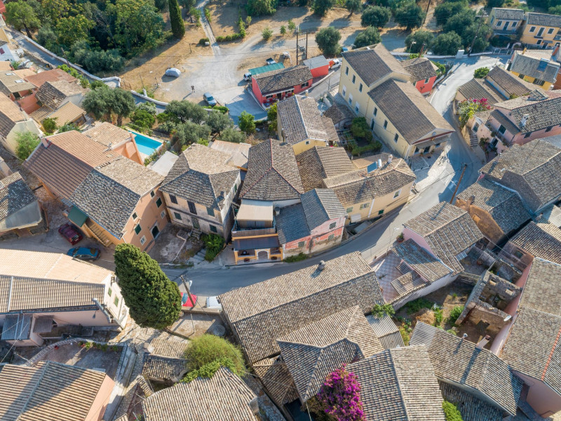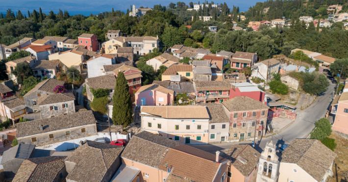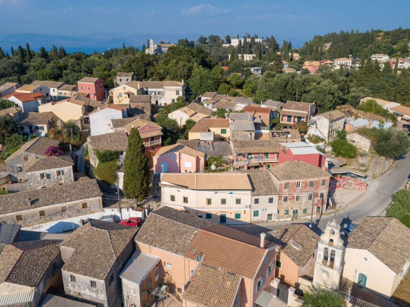 Gastouri, known primarily for its proximity to the magnificent Achilleion Palace, sits elegantly on a hillside, offering stunning views that once captivated Empress Sissy, prompting her to build her famed residence here. The studios are situated in the eastern part of Corfu, conveniently close to the coastal towns of Benitses and Perama, providing guests with easy access to beautiful beaches and local attractions.