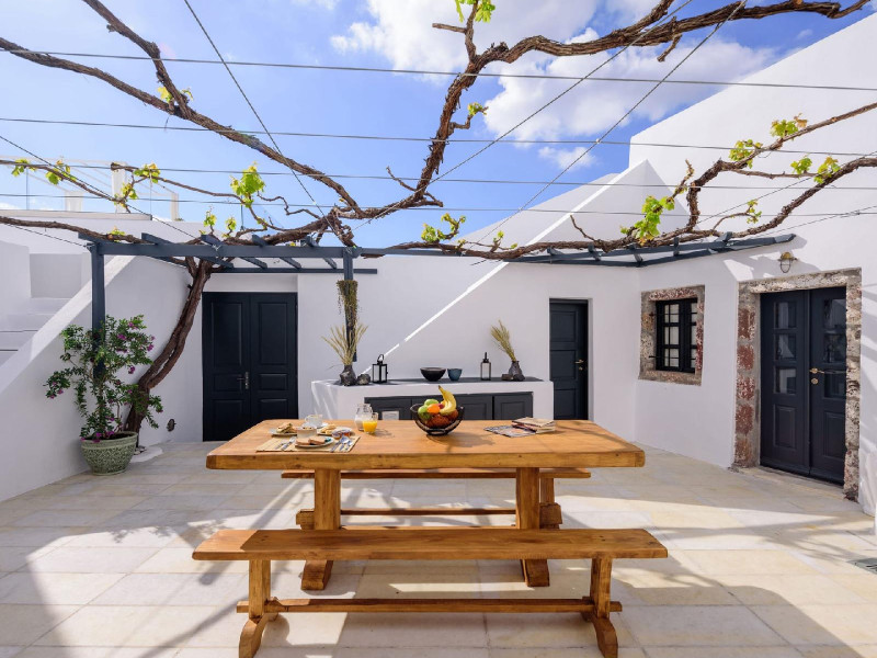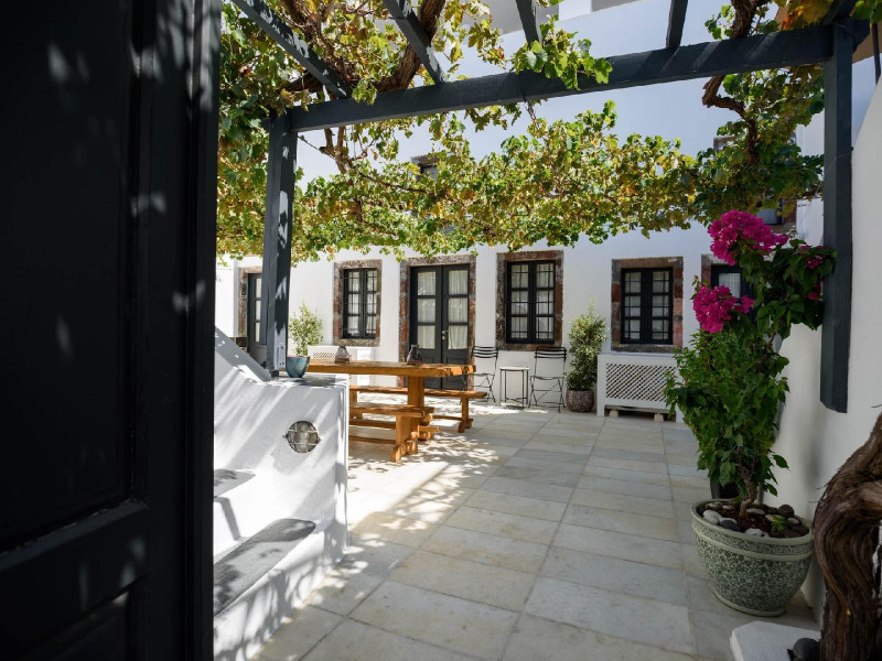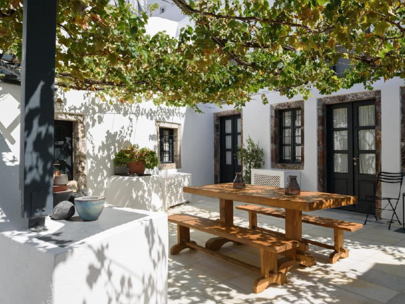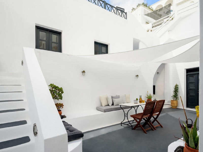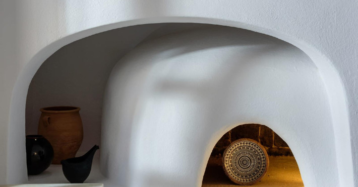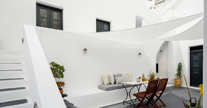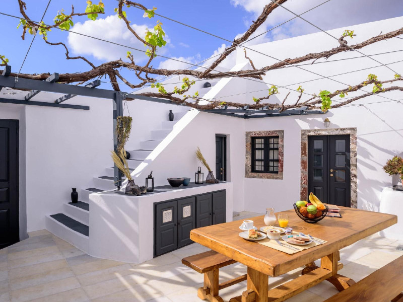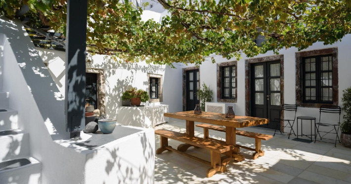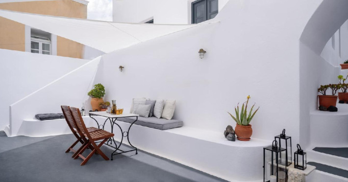 The Casa Story An enchanting boutique hotel with a past’s flair Recreate life, Redefine memories Imagine a place serene and familiar, surrounded by the seductive architecture of domes, exuding the feeling that you are stepping into a picturesque neighborhood of old times. A cozy hideaway of rock suites at Fira that initiate you into the slow luxury living and the very essence of Santorini’s soul. Dream it! Celebrating the feeling of belonging, the brand-new Firalia is a boutique time capsule of 6 suites designed for the discerning travelers that honor the past and adore unpretentious luxury. A traditional island house of 1890 built into the rock, a witness of many changes on Santorini, has turned meticulously into a contemporary hotel concept where the historical elements become the canvas for guests to create unique memories. Consisted of 6 charming suites, the traditional inner courtyard (Alitana in the local dialect) and two romantic roof terraces, perfect to admire the beautiful sunset, Firalia welcomes couples, friends and families to an unexpected experience. As soon as they pass the threshold, guests have their first encounter with history, as they walk into the Alitana (our main courtyard), the point of reference for socializing and enjoying the blue sky and natural light coming through the vine leaves upon their heads. As a typical Santorini’s house, it is built around an interior garden or paved courtyard that used to function as a connecting open space for all units balancing between the rooms’ privacy and the house’s meeting point. Nowadays, Alitana is the wonderfully serene shared common area with the long convent table to invite guests to share memories and create new instagrammable ones. The suites follow the same philosophy, as they preserve the nostalgic finesse of the island’s whimsical architecture focused on inner spaces with domes and high ceilings with small windows allowing the natural light and air traversing the whole room, while adding an alluring sense. Small corridors connect the passages to and from the main and the back exit leading to the cobbled alleys at the center of Fira. Climbing the stone stairs, guests find themselves in front of a romantic meeting point. Already a talk of the town among those with a sensitive heart, the roof terraces unfold the whole uninterrupted water stage for them to savour every second of the sunset just a few steps away from their suite.The Casa Story An enchanting boutique hotel with a past’s flair Recreate life, Redefine memories Imagine a place serene and familiar, surrounded by the seductive architecture of domes, exuding the feeling that you are stepping into a picturesque neighborhood of old times. A cozy hideaway of rock suites at Fira that initiate you into the slow luxury living and the very essence of Santorini’s soul. Dream it! Celebrating the feeling of belonging, the brand-new Firalia is a boutique time capsule of 6 suites designed for the discerning travelers that honor the past and adore unpretentious luxury. A traditional island house of 1890 built into the rock, a witness of many changes on Santorini, has turned meticulously into a contemporary hotel concept where the historical elements become the canvas for guests to create unique memories. Consisted of 6 charming suites, the traditional inner courtyard (Alitana in the local dialect) and two romantic roof terraces, perfect to admire the beautiful sunset, Firalia welcomes couples, friends and families to an unexpected experience. As soon as they pass the threshold, guests have their first encounter with history, as they walk into the Alitana (our main courtyard), the point of reference for socializing and enjoying the blue sky and natural light coming through the vine leaves upon their heads. As a typical Santorini’s house, it is built around an interior garden or paved courtyard that used to function as a connecting open space for all units balancing between the rooms’ privacy and the house’s meeting point. Nowadays, Alitana is the wonderfully serene shared common area with the long convent table to invite guests to share memories and create new instagrammable ones. The suites follow the same philosophy, as they preserve the nostalgic finesse of the island’s whimsical architecture focused on inner spaces with domes and high ceilings with small windows allowing the natural light and air traversing the whole room, while adding an alluring sense. Small corridors connect the passages to and from the main and the back exit leading to the cobbled alleys at the center of Fira. Climbing the stone stairs, guests find themselves in front of a romantic meeting point. Already a talk of the town among those with a sensitive heart, the roof terraces unfold the whole uninterrupted water stage for them to savour every second of the sunset just a few steps away from their suite.