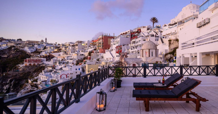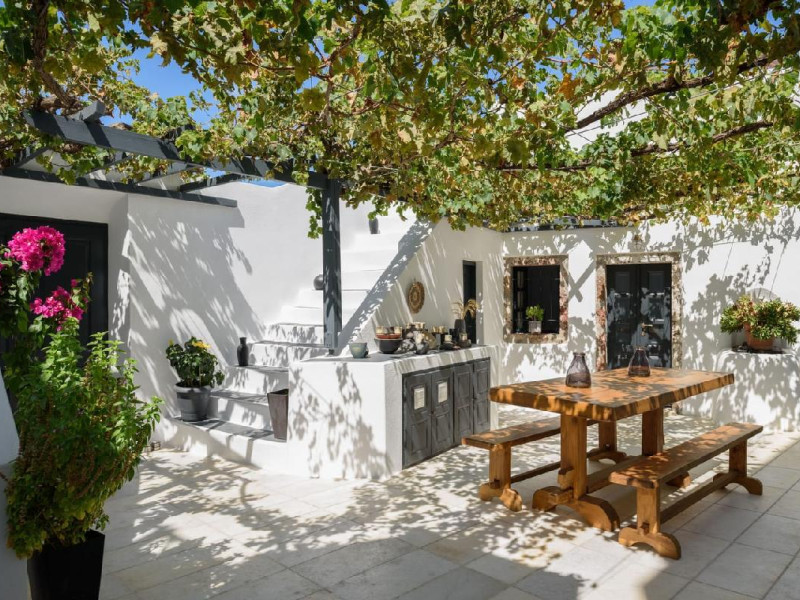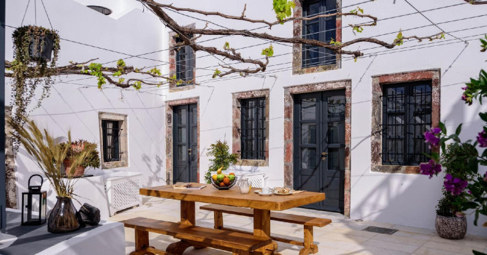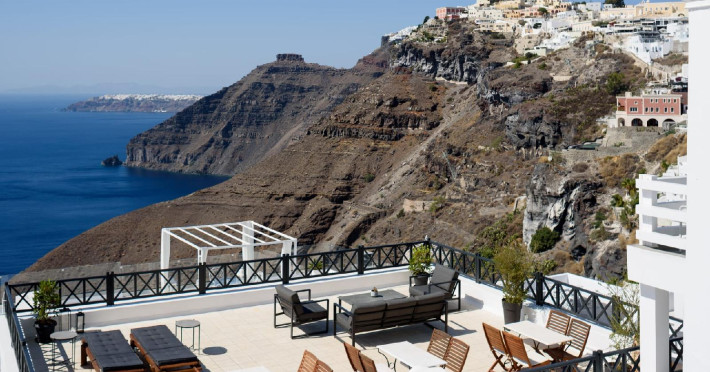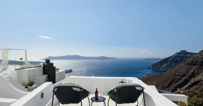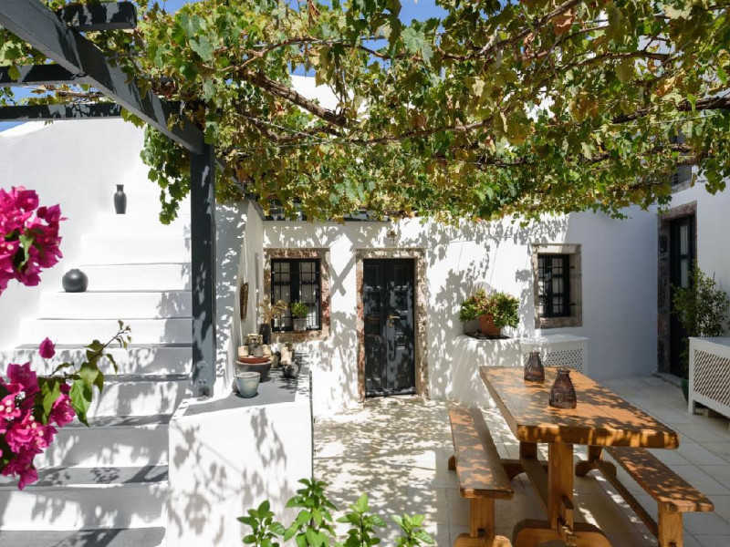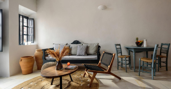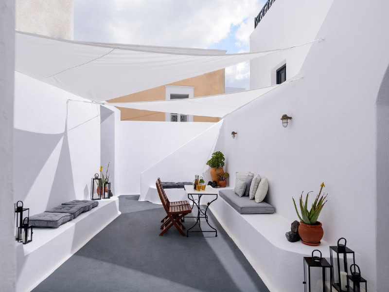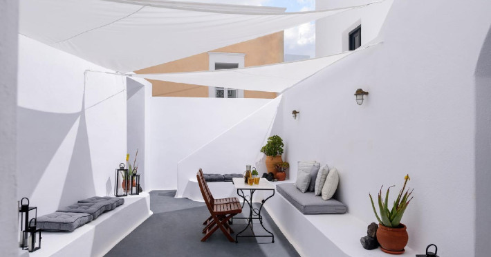 The Casa Story An enchanting boutique hotel with a past’s flair Recreate life, Redefine memories Imagine a place serene and familiar, surrounded by the seductive architecture of domes, exuding the feeling that you are stepping into a picturesque neighborhood of old times. A cozy hideaway of rock suites at Fira that initiate you into the slow luxury living and the very essence of Santorini’s soul. Dream it! Celebrating the feeling of belonging, the brand-new Firalia is a boutique time capsule of 6 suites designed for the discerning travelers that honor the past and adore unpretentious luxury. A traditional island house of 1890 built into the rock, a witness of many changes on Santorini, has turned meticulously into a contemporary hotel concept where the historical elements become the canvas for guests to create unique memories. Consisted of 6 charming suites, the traditional inner courtyard (Alitana in the local dialect) and two romantic roof terraces, perfect to admire the beautiful sunset, Firalia welcomes couples, friends and families to an unexpected experience. As soon as they pass the threshold, guests have their first encounter with history, as they walk into the Alitana (our main courtyard), the point of reference for socializing and enjoying the blue sky and natural light coming through the vine leaves upon their heads. As a typical Santorini’s house, it is built around an interior garden or paved courtyard that used to function as a connecting open space for all units balancing between the rooms’ privacy and the house’s meeting point. Nowadays, Alitana is the wonderfully serene shared common area with the long convent table to invite guests to share memories and create new instagrammable ones. The suites follow the same philosophy, as they preserve the nostalgic finesse of the island’s whimsical architecture focused on inner spaces with domes and high ceilings with small windows allowing the natural light and air traversing the whole room, while adding an alluring sense. Small corridors connect the passages to and from the main and the back exit leading to the cobbled alleys at the center of Fira. Climbing the stone stairs, guests find themselves in front of a romantic meeting point. Already a talk of the town among those with a sensitive heart, the roof terraces unfold the whole uninterrupted water stage for them to savour every second of the sunset just a few steps away from their suite.The Casa Story An enchanting boutique hotel with a past’s flair Recreate life, Redefine memories Imagine a place serene and familiar, surrounded by the seductive architecture of domes, exuding the feeling that you are stepping into a picturesque neighborhood of old times. A cozy hideaway of rock suites at Fira that initiate you into the slow luxury living and the very essence of Santorini’s soul. Dream it! Celebrating the feeling of belonging, the brand-new Firalia is a boutique time capsule of 6 suites designed for the discerning travelers that honor the past and adore unpretentious luxury. A traditional island house of 1890 built into the rock, a witness of many changes on Santorini, has turned meticulously into a contemporary hotel concept where the historical elements become the canvas for guests to create unique memories. Consisted of 6 charming suites, the traditional inner courtyard (Alitana in the local dialect) and two romantic roof terraces, perfect to admire the beautiful sunset, Firalia welcomes couples, friends and families to an unexpected experience. As soon as they pass the threshold, guests have their first encounter with history, as they walk into the Alitana (our main courtyard), the point of reference for socializing and enjoying the blue sky and natural light coming through the vine leaves upon their heads. As a typical Santorini’s house, it is built around an interior garden or paved courtyard that used to function as a connecting open space for all units balancing between the rooms’ privacy and the house’s meeting point. Nowadays, Alitana is the wonderfully serene shared common area with the long convent table to invite guests to share memories and create new instagrammable ones. The suites follow the same philosophy, as they preserve the nostalgic finesse of the island’s whimsical architecture focused on inner spaces with domes and high ceilings with small windows allowing the natural light and air traversing the whole room, while adding an alluring sense. Small corridors connect the passages to and from the main and the back exit leading to the cobbled alleys at the center of Fira. Climbing the stone stairs, guests find themselves in front of a romantic meeting point. Already a talk of the town among those with a sensitive heart, the roof terraces unfold the whole uninterrupted water stage for them to savour every second of the sunset just a few steps away from their suite.