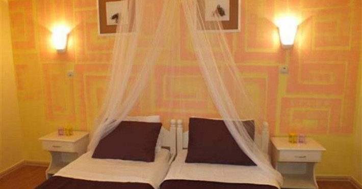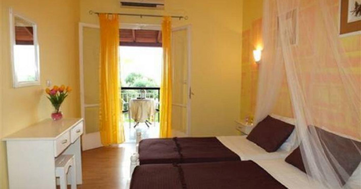 16 camere - duble, twin, triple (sau extrabed) in 2 corpuri de cladire; dotate cu parchet laminat, cutie de valori (gratuit), prosoape, frigider, TV prin cablu, internet wireless-free access, A/C (7 €/cam/zi), obloane pentru soare, baie cu dus, minibucatarie complet utilata, balcon sau terasa.