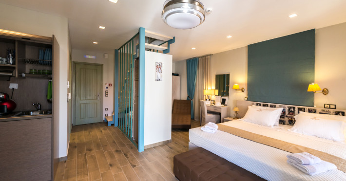Aparatul de aer condiționat și sistemul de încălzire creează o atmosferă plăcută în camere. Dotările standard din majoritatea camerelor includ un balcon. Camerele au un pat „King size” sau o canapea. De asemenea, pot fi puse la dispoziție pătuțuri pentru bebeluși și paturi suplimentare. De asemenea, sunt disponibile un seif și un minibar. În chicinetă se află un frigider și un aparat pentru cafea/ceai. Telefonul, televizorul, radioul, DVD player-ul și WiFi-ul (contra cost) oferă un concediu confortabil. În cameră se găsesc și papuci de casă. În baia dotată cu un duș există un uscător de păr și halate de baie.