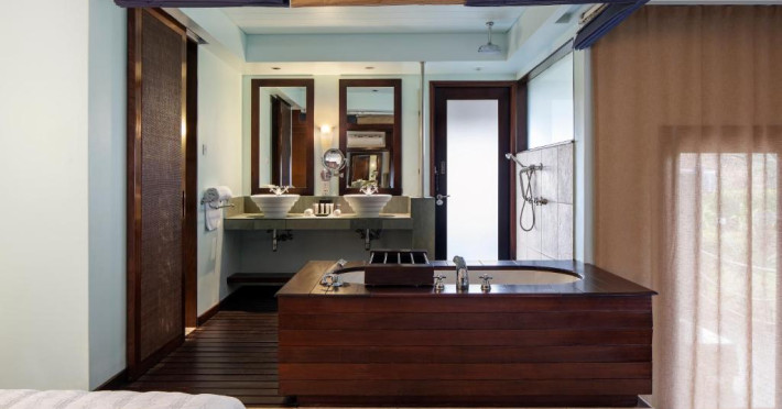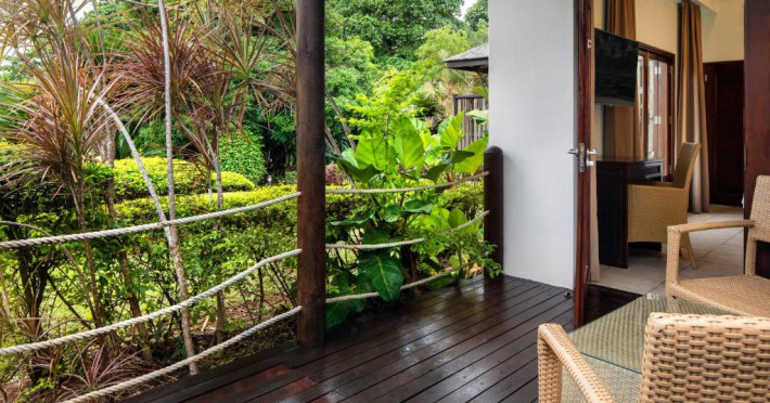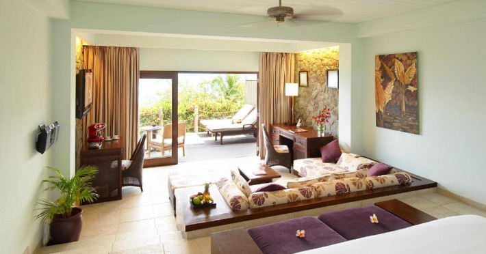 Camerele și suitele, decorate in nuanțe marine și lemn natural, oferă vedere spre Oceanul Indian sau spre grădinile tropicale. Majoritatea unităților de cazare beneficiază de terase sau balcoane spațioase, perfecte pentru a admira apusurile spectaculoase.