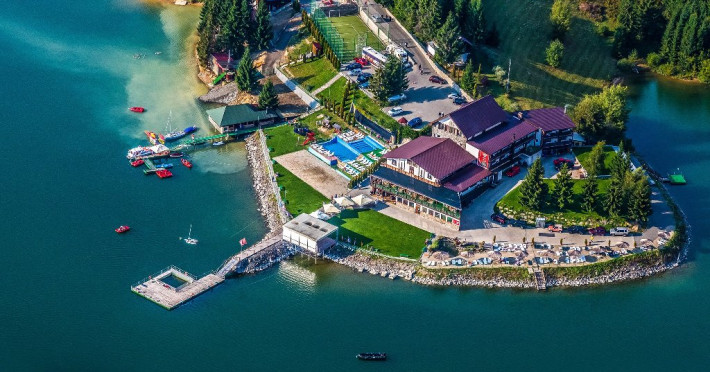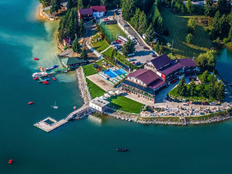 DESCRIERE UNITATE DE CAZARE: Fishermans Resort situat pe malul lacului Colibita dispune de ponton de unde turistii pot pleca in croaziere cu vaporasul, pot inchiria hidrobiciclete, caiace SUP, terasa, sauna uscata, piscina interioara si exterioara incalzita si jacuzii, plaja cu sezlonguri si umbrelute. Teren de sport cu nocturna, pescuit, teren de joaca pentru copii.
