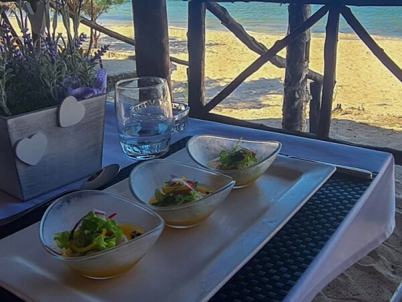 Hotelul Five Palms Zanzibar cuprinde restaurantul Kayo, unde oaspetii pot servi micul dejun si cina in regim a la carte, in timp ce se bucura de privelistea superba. Meniul include preparate culinare exotice, cu specific local, dar si specialitati internationale. De asemenea, aspetii se pot delecta cu preparate la gratar si pot petrece pana dimineata cu sampanie si cocktailuri la barul de pe plaja Kayo Beach Bar.