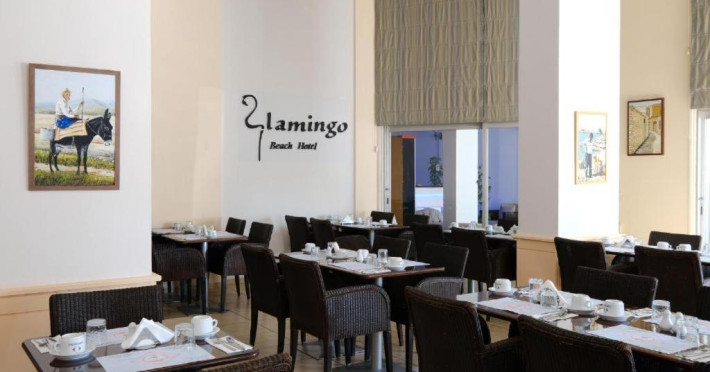 La Flamingo Beach oaspeții au la dispoziție un restaurant care servește mâncare în stil bufet și à la carte. Bucătăria mediteraneană de la Flamingo Beach propune preparate delicioase care satisfac gusturi diverse. Oaspeţii pot avea diverse băuturi răcoritoare sau alcoolice la bar.