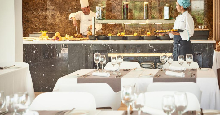 La Flamingo Beach Mate oaspeții pot servi masa în stil bufet. Flamingo Beach Mate servește zilnic un mic dejun tip bufet în zona de luat masa. Oaspeţii pot avea diverse băuturi răcoritoare sau alcoolice la bar. În cadrul proprietății există și un snack bar care servește băuturi și gustări. Pentru cei cu anumite nevoi de nutriție, Flamingo Beach Mate oferă meniuri pentru diete speciale.
