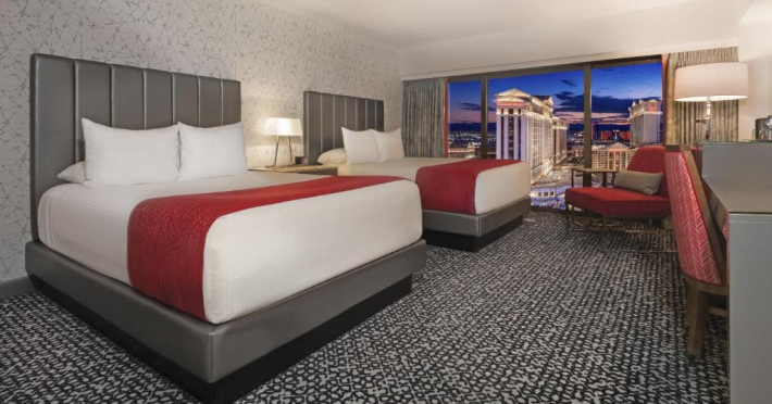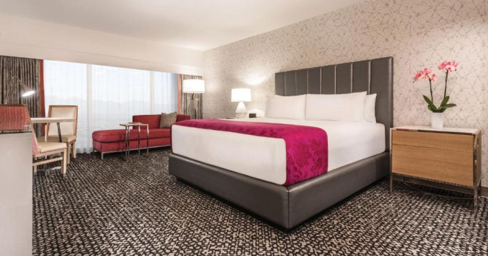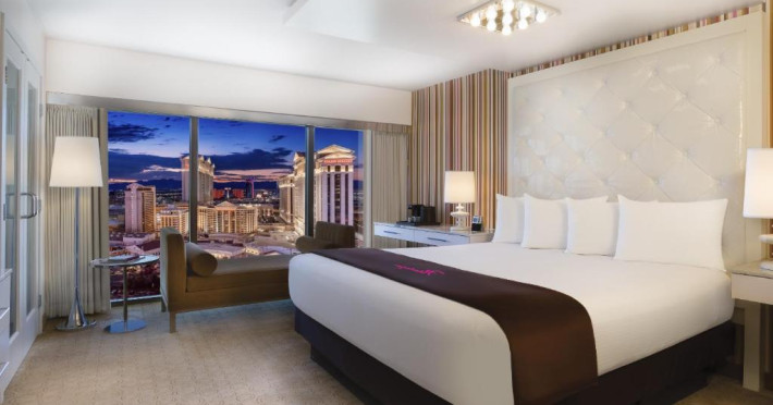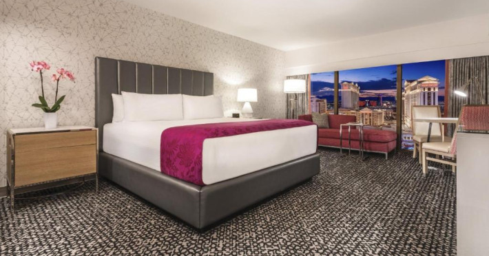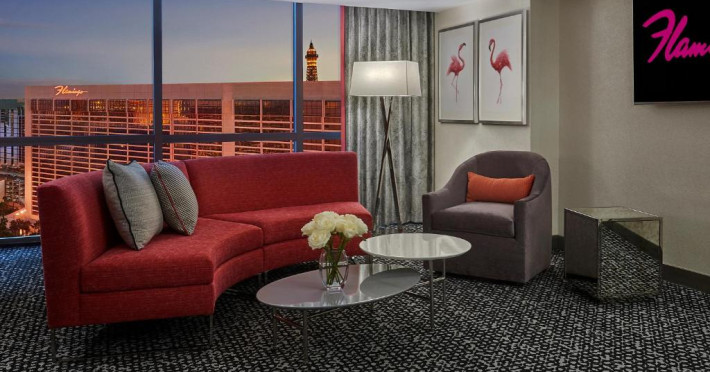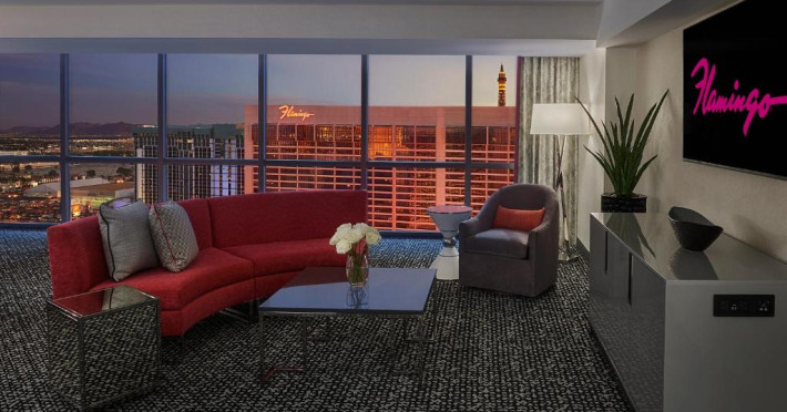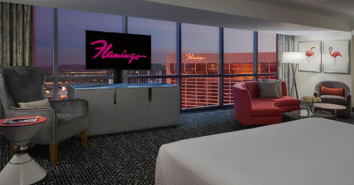 Stați pe banda centrală la fabulosul hotel și cazinou Flamingo Las Vegas. Acum oferă camere Flamingo recent renovate, care au un amestec de Vegas clasic cu stilul modern
