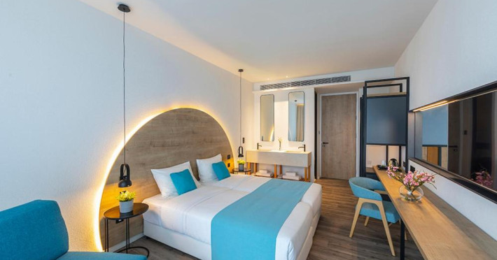 Camerele de la Flamingo Paradise Beach sunt dotate cu aer condiționat, Tv cu canale prin satelit și seif. Fiecare cameră oferă cană-fierbător și mașină pentru prepare cafea sau ceai. Oaspeții pot solicita serviciul de room service pentru a servi masa sau diverse băuturi. În camere există baie cu cadă sau duș ce are în dotare foehn și articole de toaletă gratuite. Oaspeții au acces gratuit la serviciul Wi-fi în camere. Unele camere au balcon cu vedere la mare. Curățenia in cameră se face zilnic.