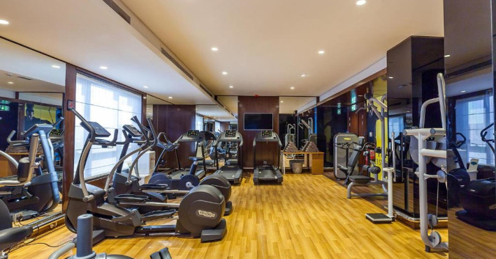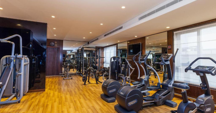 O sală de fitness cu echipamente necesare pentru o gamă variată de exerciții fizice este la dispoziția celor interesați.