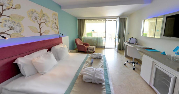 Sunt disponibile 224 camere. Camerele luminoase de la Flora Garden Beach sunt dotate cu parchet, aer condiționat, Tv cu canale prin satelit și seif. Fiecare cameră dispune de minibar. În camere există baie cu cadă sau duș prevăzută cu foehn. Oaspeții au acces gratuit la serviciul Wi-fi în camere. Camerele au balcon cu vedere la mare sau la piscină. Curățenia in cameră se face zilnic.