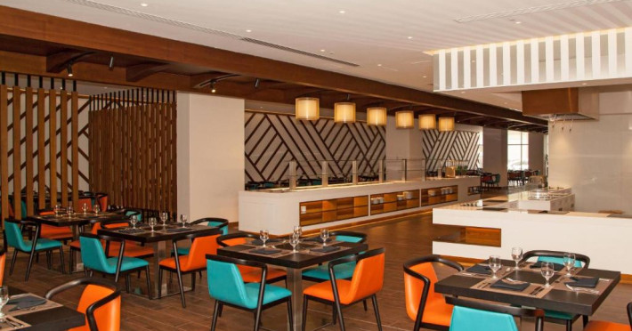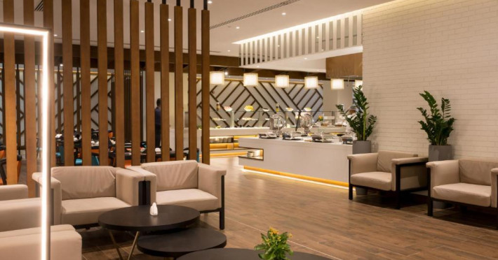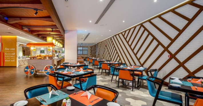 Restaurantul oferă preparate din bucătăria arabă, asiatică și internațională. La proprietate este servit in fiecare dimineață un mic dejun continental.