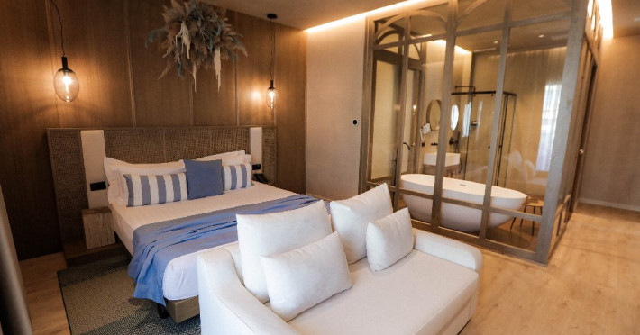 Plaja dispune de salvamar, beach bar, sezlonguri, umbrela si prosoape de plaja.