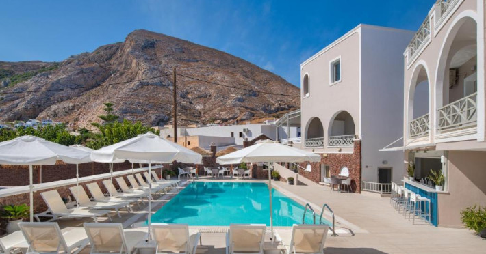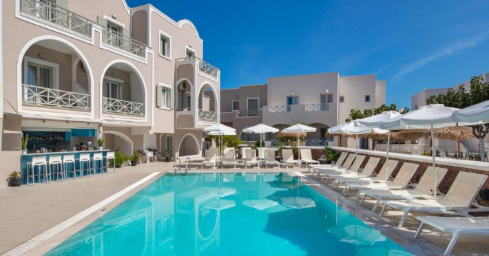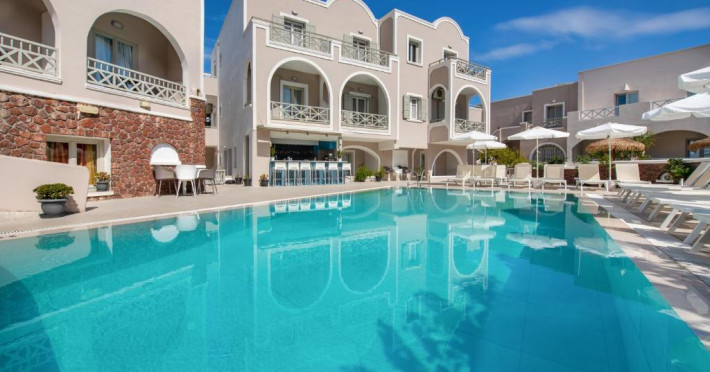 Această proprietate de 3 stele se află în Kamari (Santorini) și oferă unități de cazare cu aer condiționat și o piscină în aer liber, cu șezlonguri și umbrele de soare. Proprietatea are servicii de concierge și închirieri auto. Se oferă acces gratuit la internet Wi-fi în spațiile publice. Parcarea este posibilă pe stradă, în imediata apropiere a proprietății.